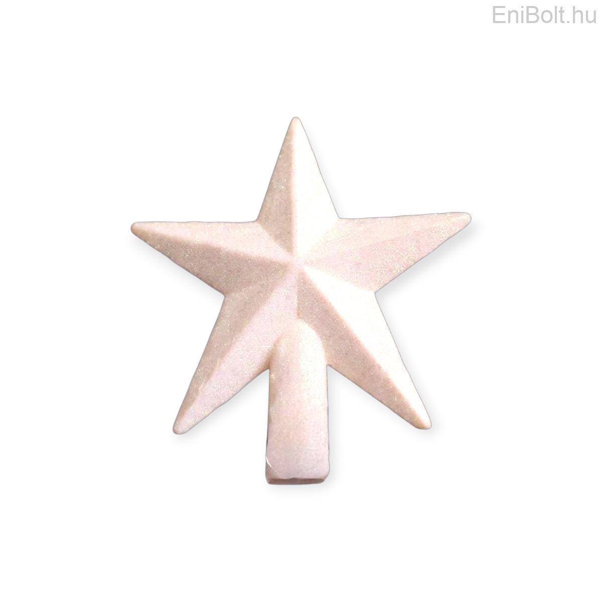 Elegáns 3D csillag alakú karácsonyfa csúcsdísz, irizáló fehér felülettel és finom csillámhatással. Modern, fénylő és légies díszítéshez tökéletes.