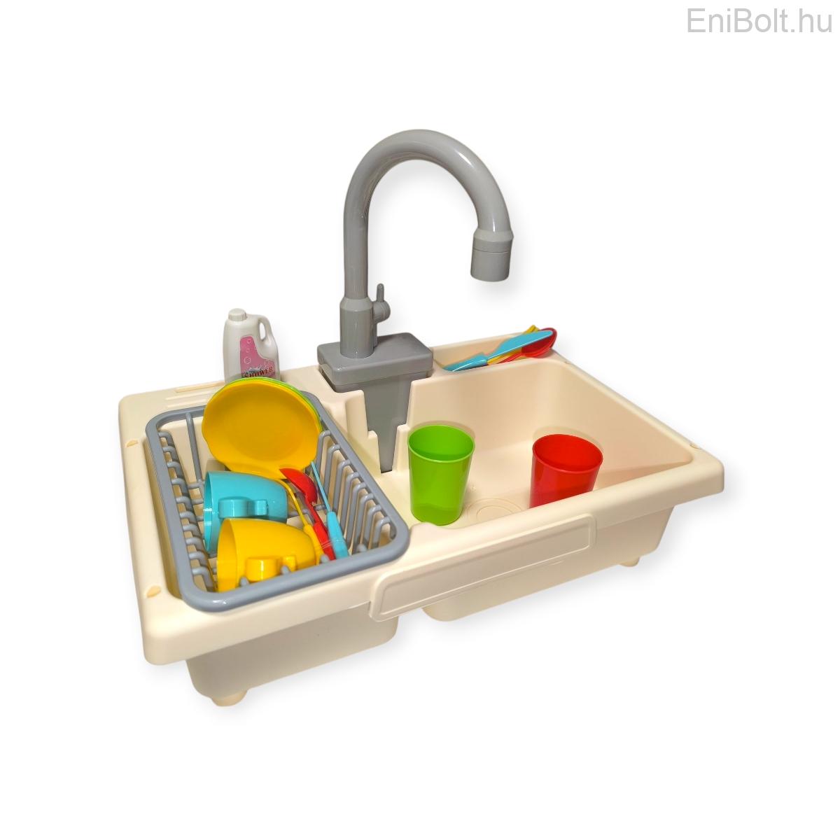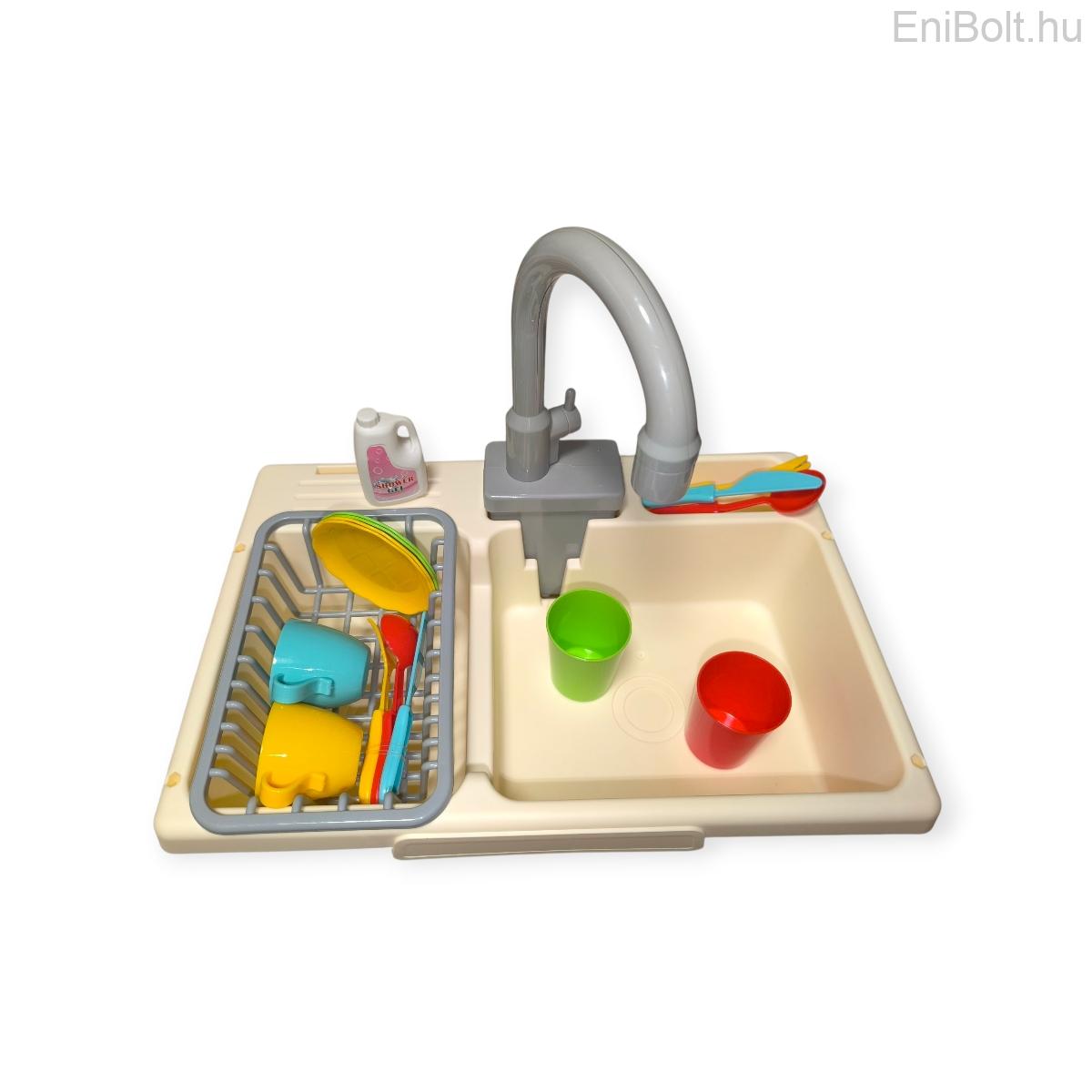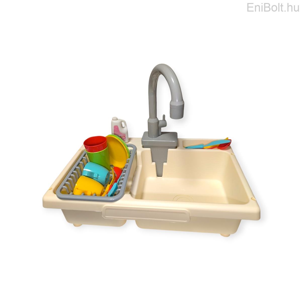 Játék mosogató folyóvíz funkcióval és kiegészítőkkel 36 cm