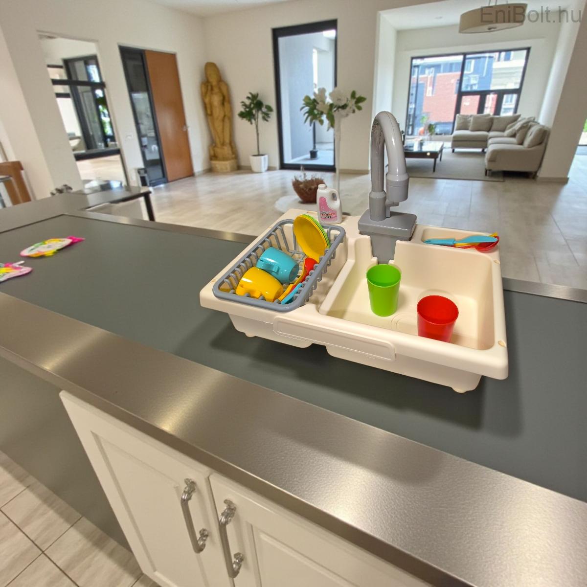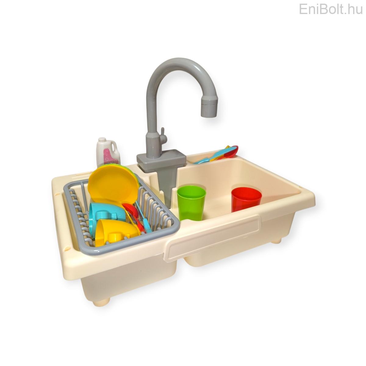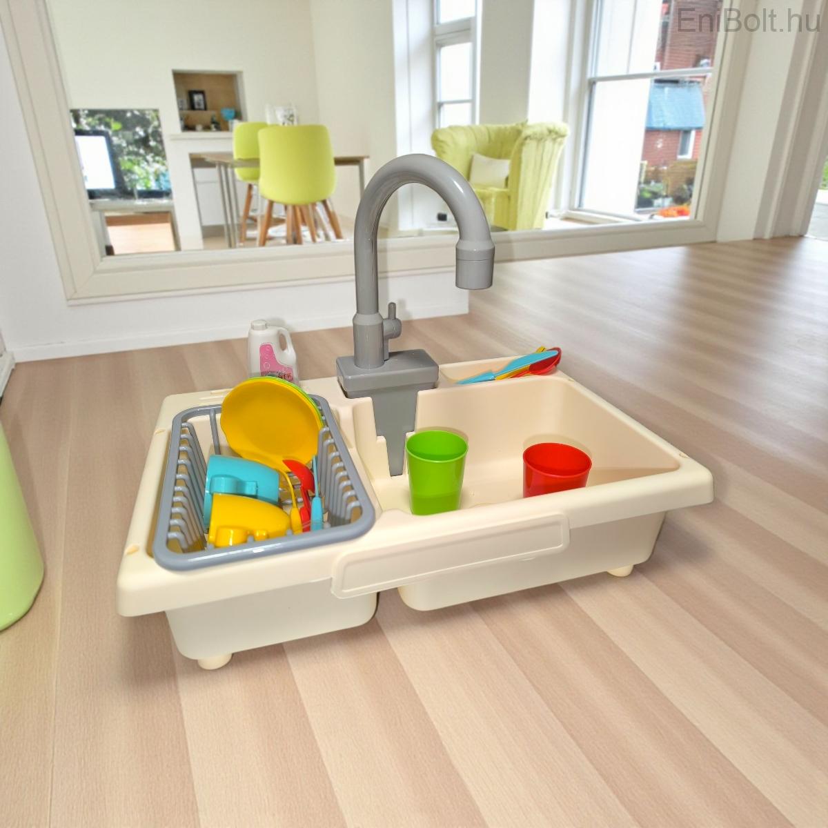 Játék mosogató folyóvíz funkcióval és kiegészítőkkel 36 cm
