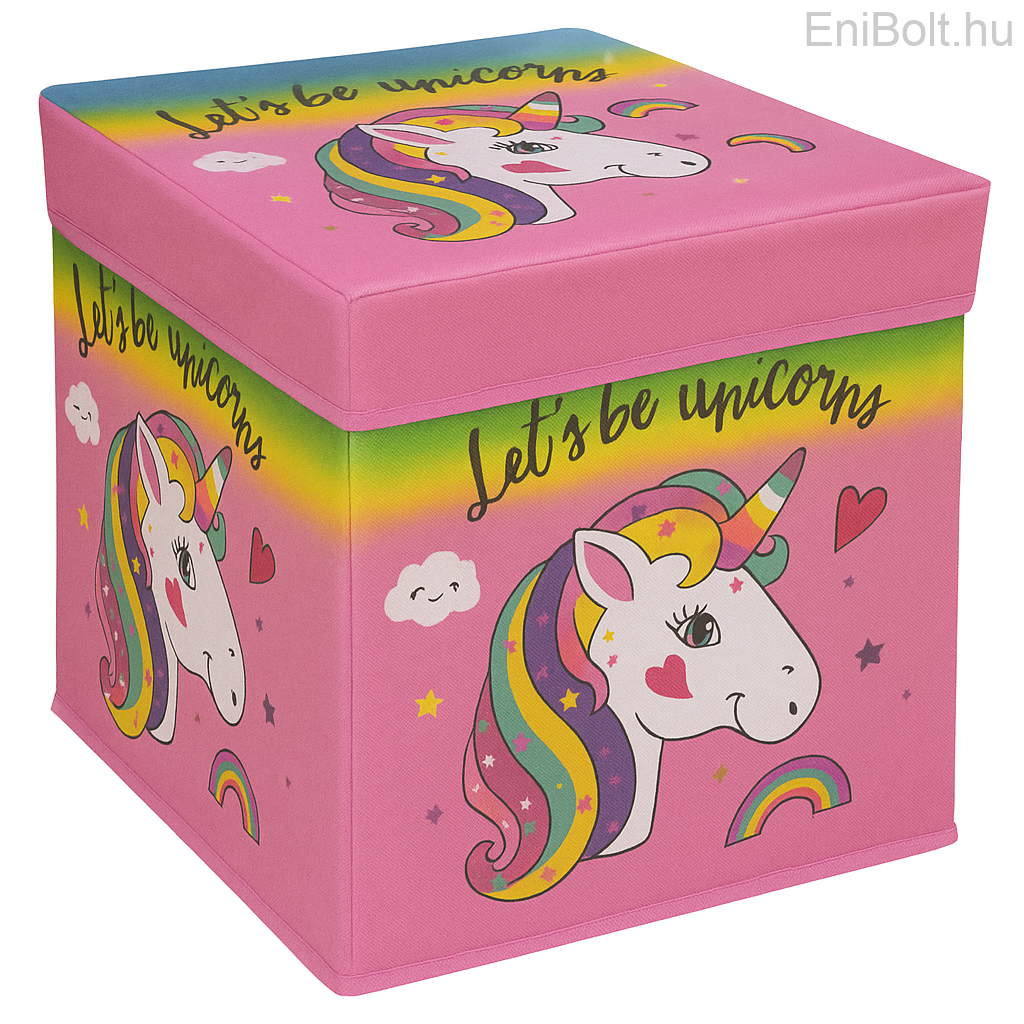Unikornisos rózsaszín tárolódoboz – 30×30×30 cm