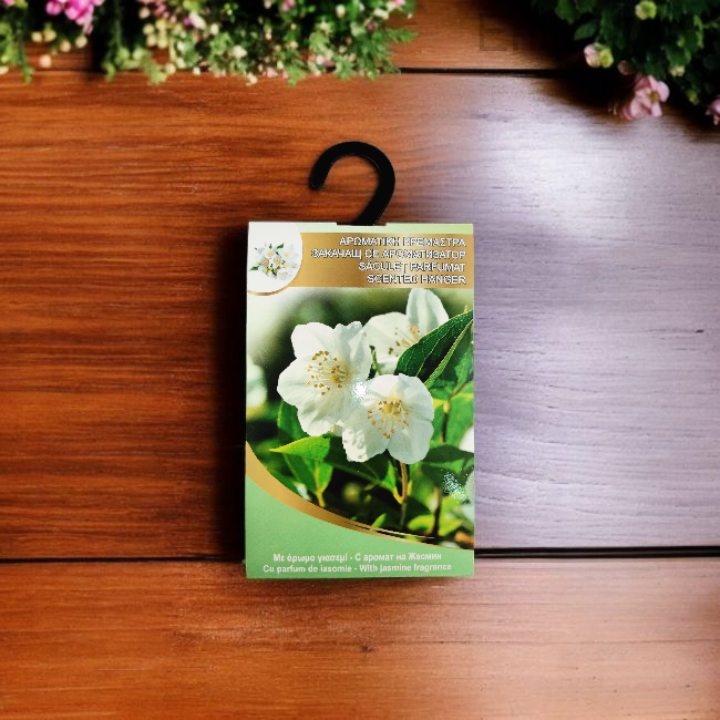 Kezdőlap » Rendszerezés és tisztítás » Tárolás és rendszerezés » Szekrény- és ruhaillatosítók » Jázmin illatú akasztós légfrissítő – 38 g