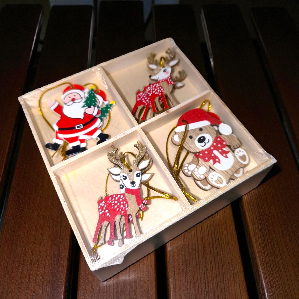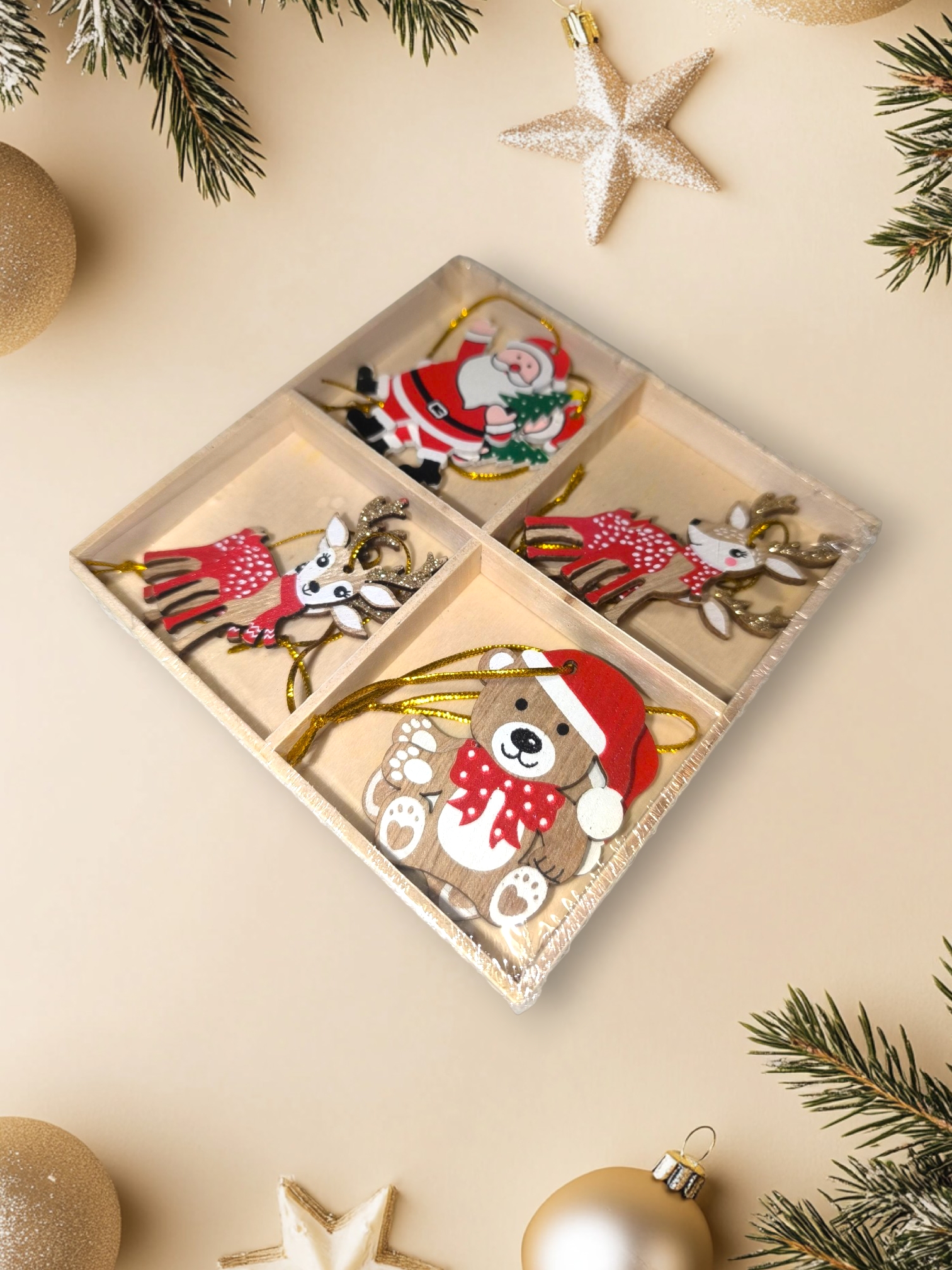 A díszek praktikus fa tokban érkeznek, így könnyen tárolhatók az ünnepek után. Akaszd őket a fára, koszorúra vagy akár dekoratív ágakra, és add meg az ünnepi dekorációnak a csillogást!