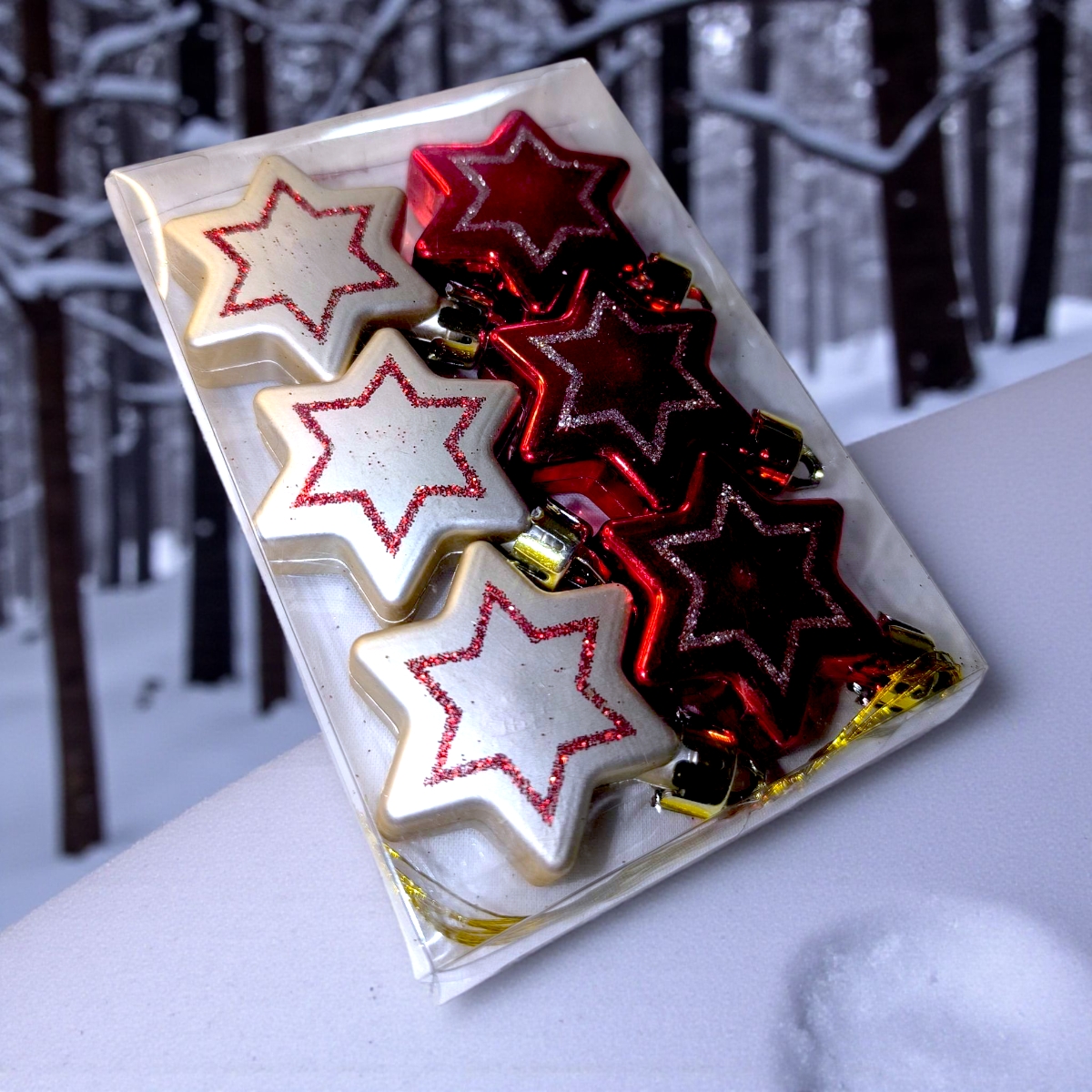 Kezdőlap » Karácsonyi dekorációk » Karácsonyfa gömbök » Piros díszek » Karácsonyfadísz csillag szett – vörös és pezsgő csillogó díszek (6 db, 6 cm)