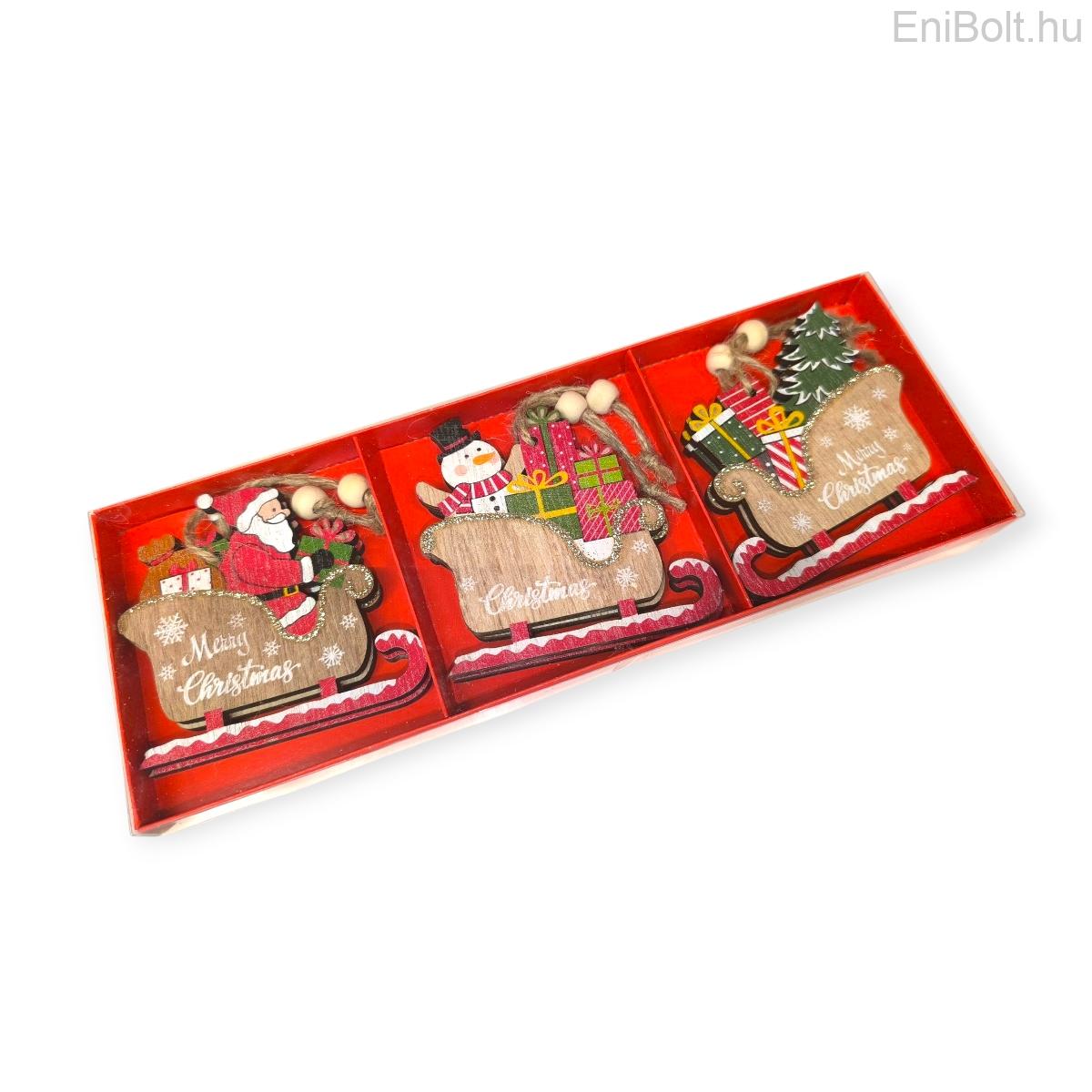 Karácsonyfadísz készlet fa figurákkal arany részletekkel 8cm – 6db