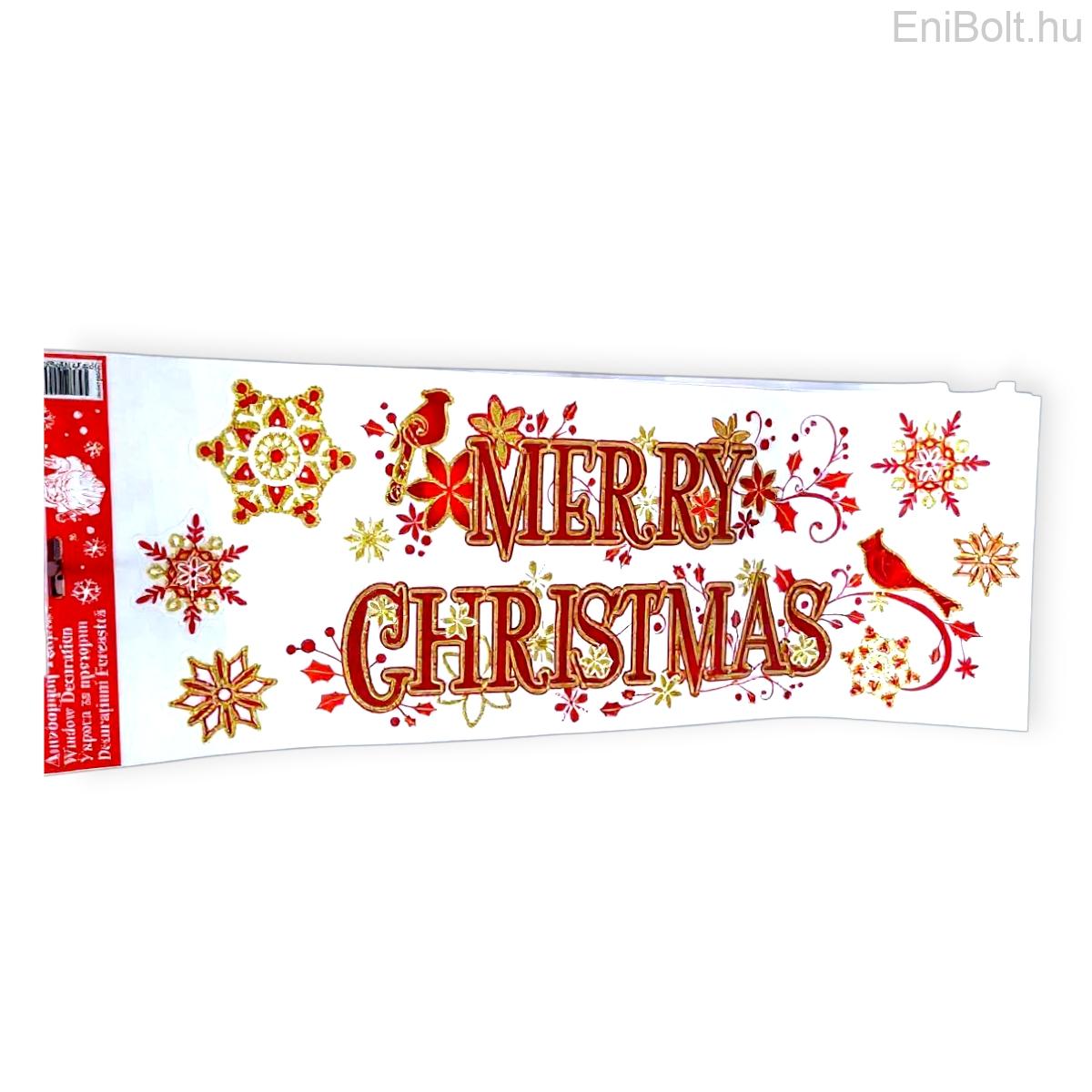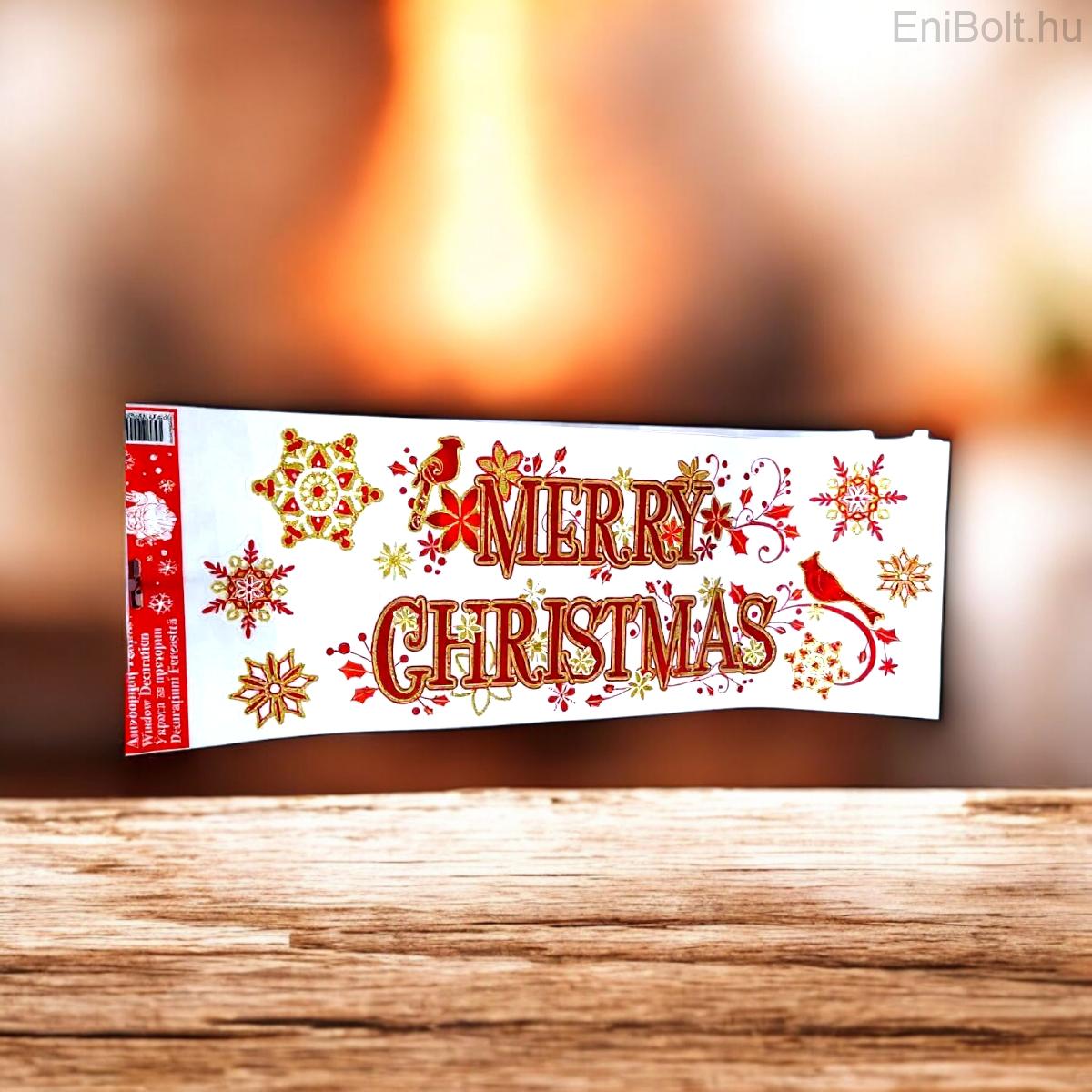 Kezdőlap » Karácsonyi dekorációk » Karácsonyi matricák » Karácsonyi ablakmatrica Boldog Karácsonyt piros madarak arany csillám 20x60cm