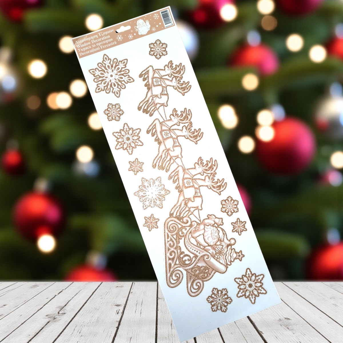 Dobd ünnepi díszbe otthonodat ezzel a bronz csillogású karácsonyi matricával, amely Mikulást szánnal, rénszarvasokkal és hópelyhekkel ábrázolja. Az elegáns bronz szín különleges és meleg hangulatot teremt, amely tökéletesen mutat ablakokon, tükrökön vagy más üvegfelületeken.