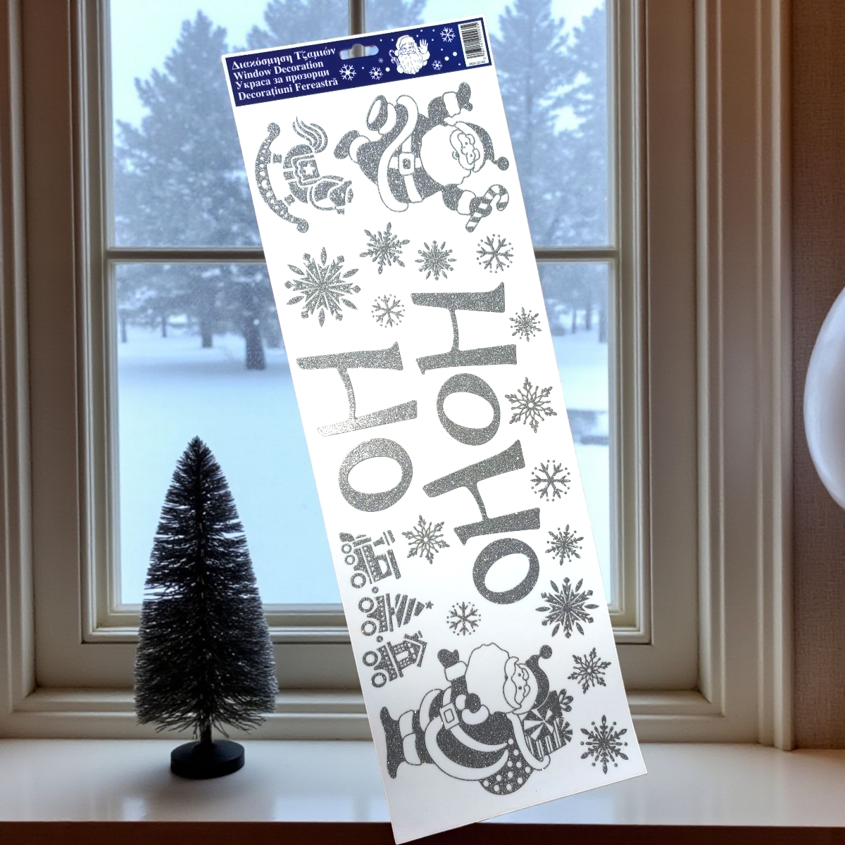 Dobd fel otthonodat vagy üzletedet ezzel a csillogó karácsonyi matricával, amely az ikonikus „Ho-Ho-Ho” feliratot ábrázolja elegáns ezüst színben. Látványos és hangulatos kiegészítő, amely tökéletesen mutat ablakokon, tükrökön vagy üvegfelületeken.