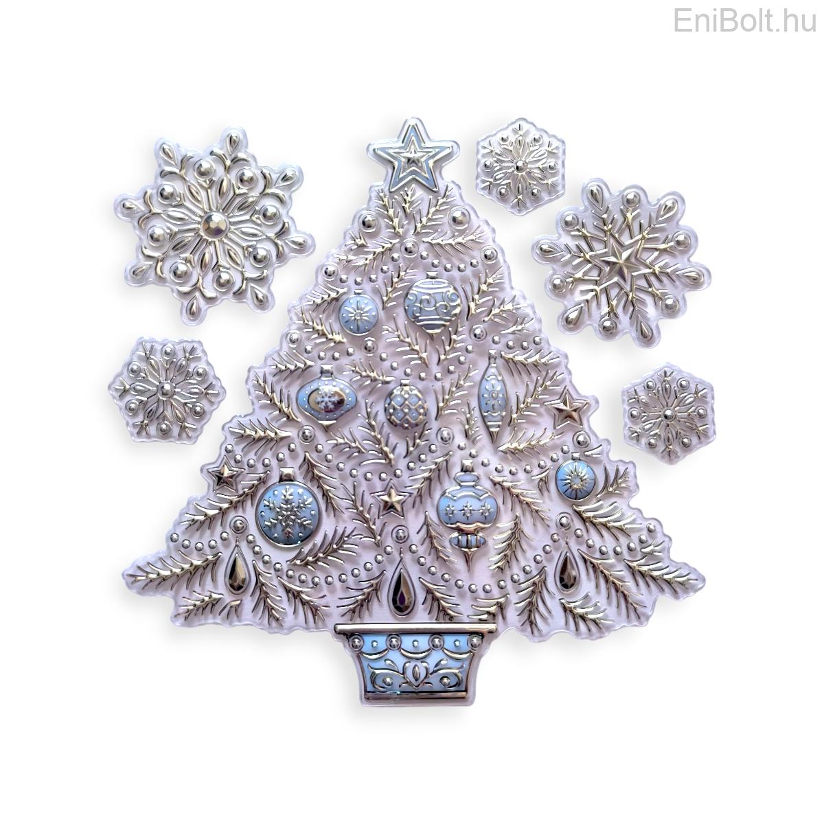 Kezdőlap » Karácsonyi dekorációk » Karácsonyi matricák » Karácsonyi ablakmatrica – Ezüst fenyő és hópelyhek 18x23cm