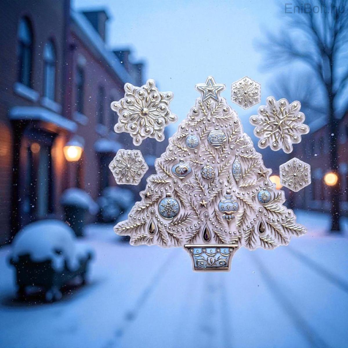 Tedd varázslatossá otthonod ezzel a dekoratív karácsonyi matricával! Az ezüst fenyő és hópehely minták elegáns, mesebeli hangulatot teremtenek, legyen szó ablakról, falról vagy tükörről.