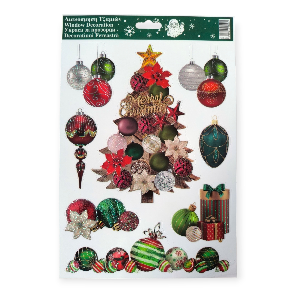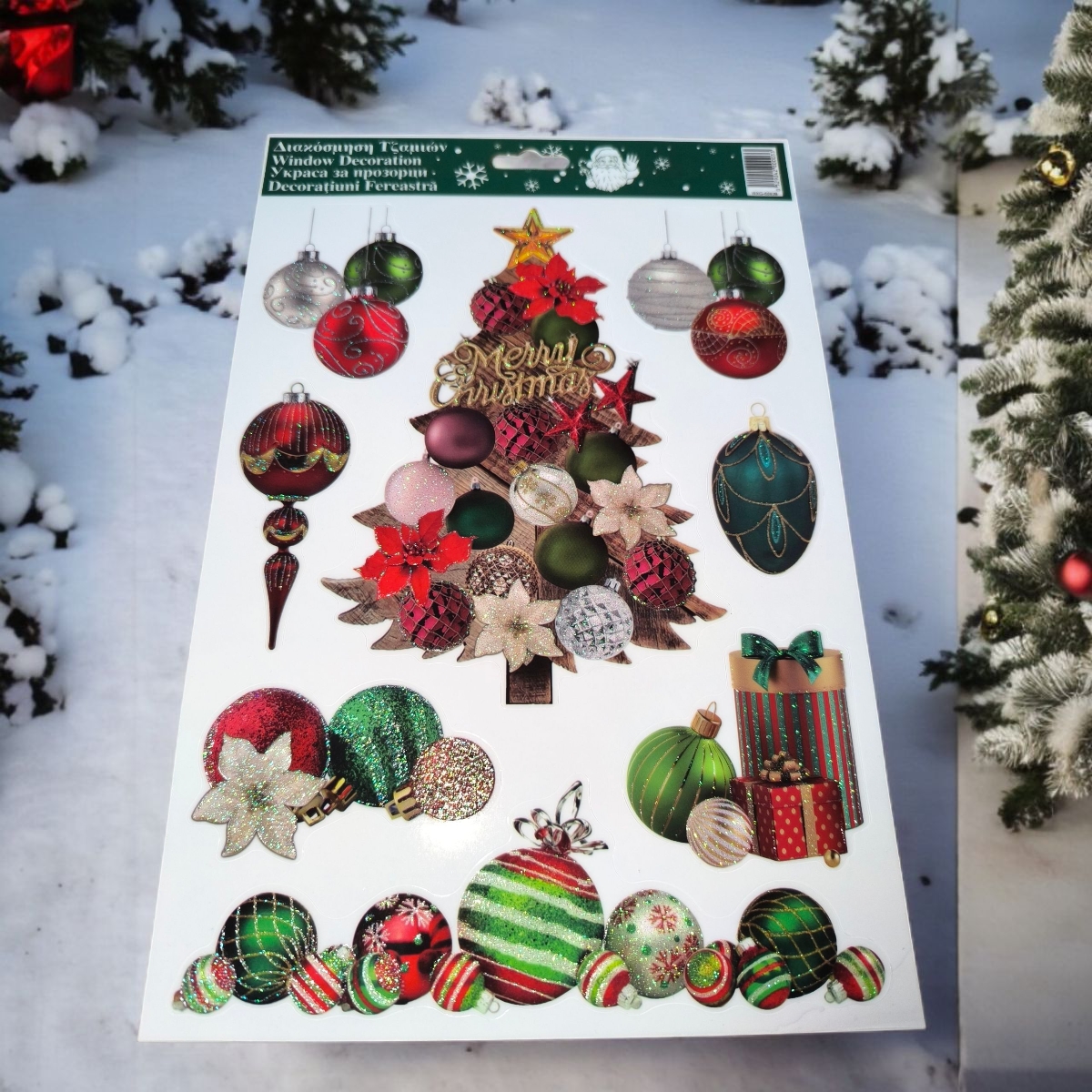Kezdőlap » Karácsonyi dekorációk » Karácsonyi matricák » Karácsonyi ablakmatrica – Karácsonyfa és vintage gömbök csillámmal, 20x30 cm