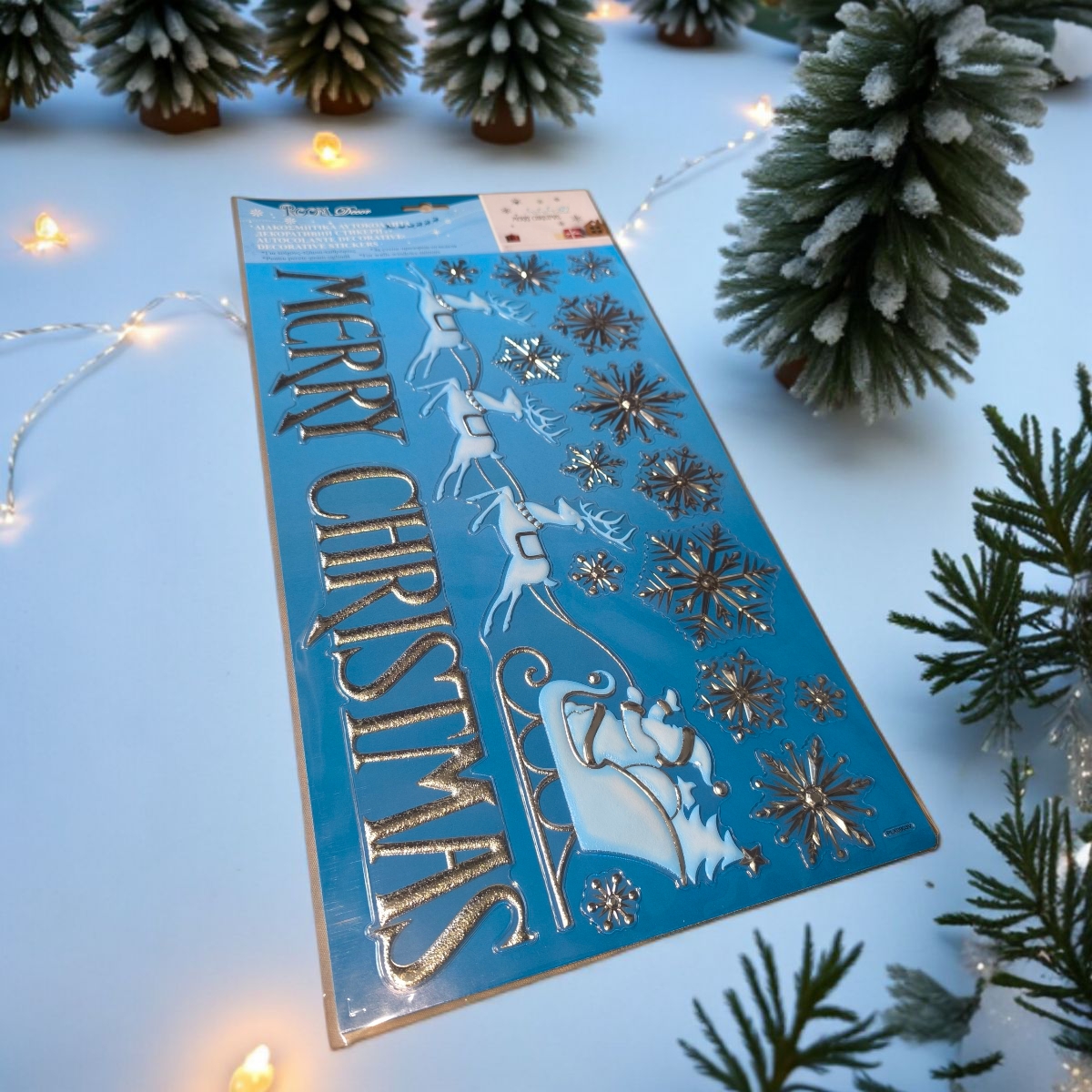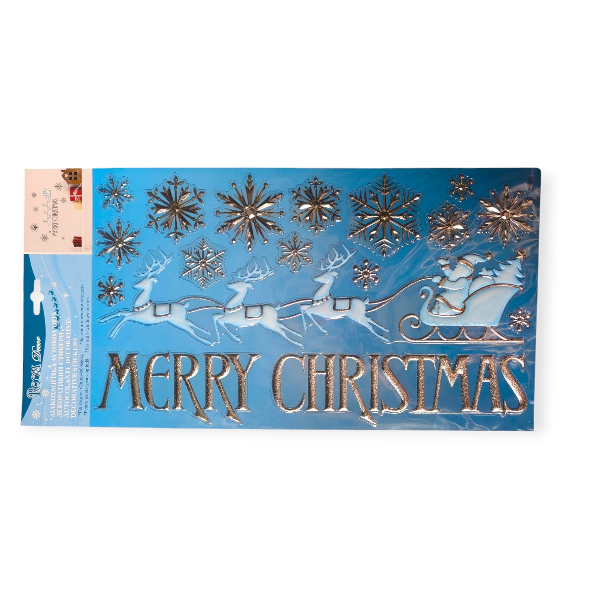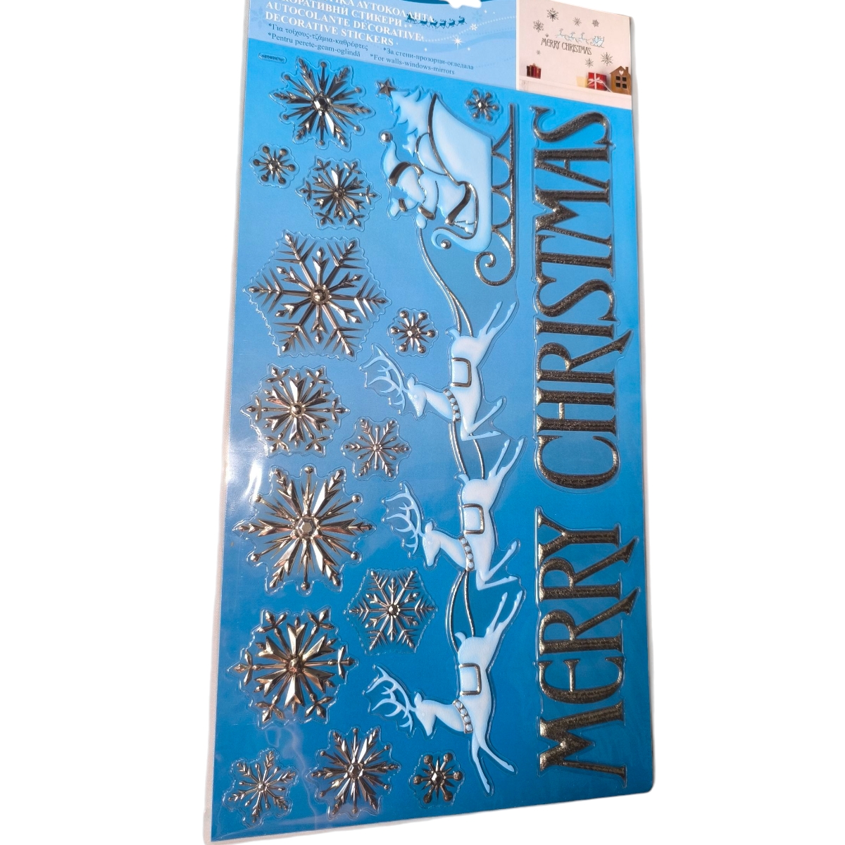 Dobd fel otthonodat vagy üzletedet ezzel a különleges karácsonyi matricával, amely rénszarvasokat, szánt, hópelyheket és a „Boldog Karácsonyt” feliratot ábrázolja! Az ezüst színű minta igazán ünnepi és elegáns hangulatot teremt, amely tökéletesen illik ablakokra, falakra vagy tükrökre.
