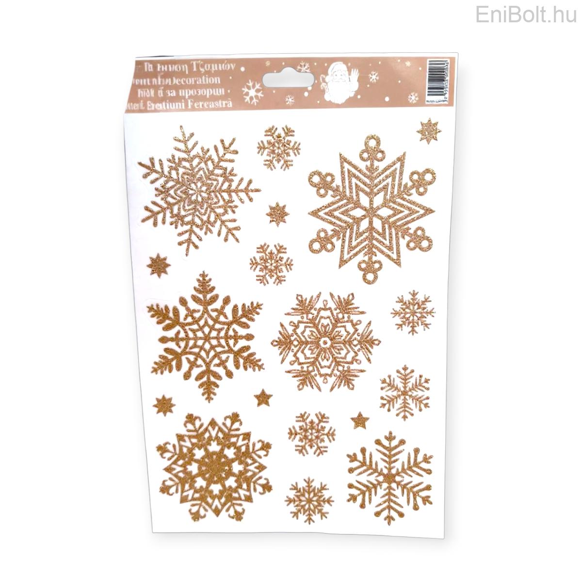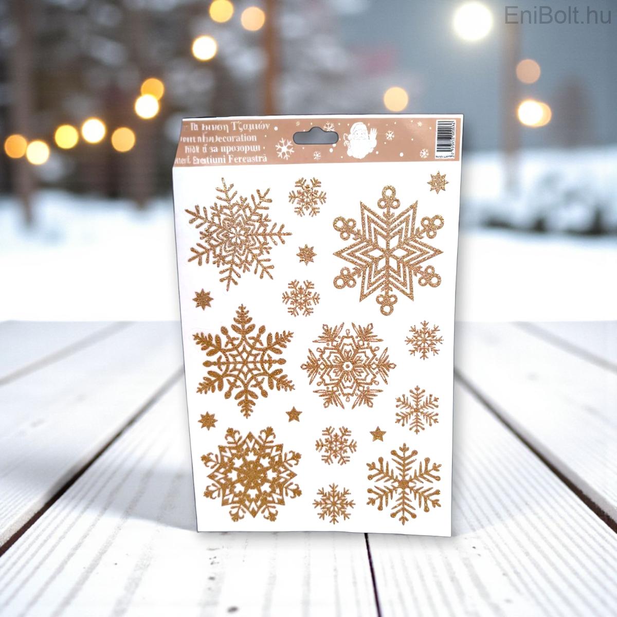 Karácsonyi ablakmatrica bronz hópelyhek csillámmal 20x30cm
