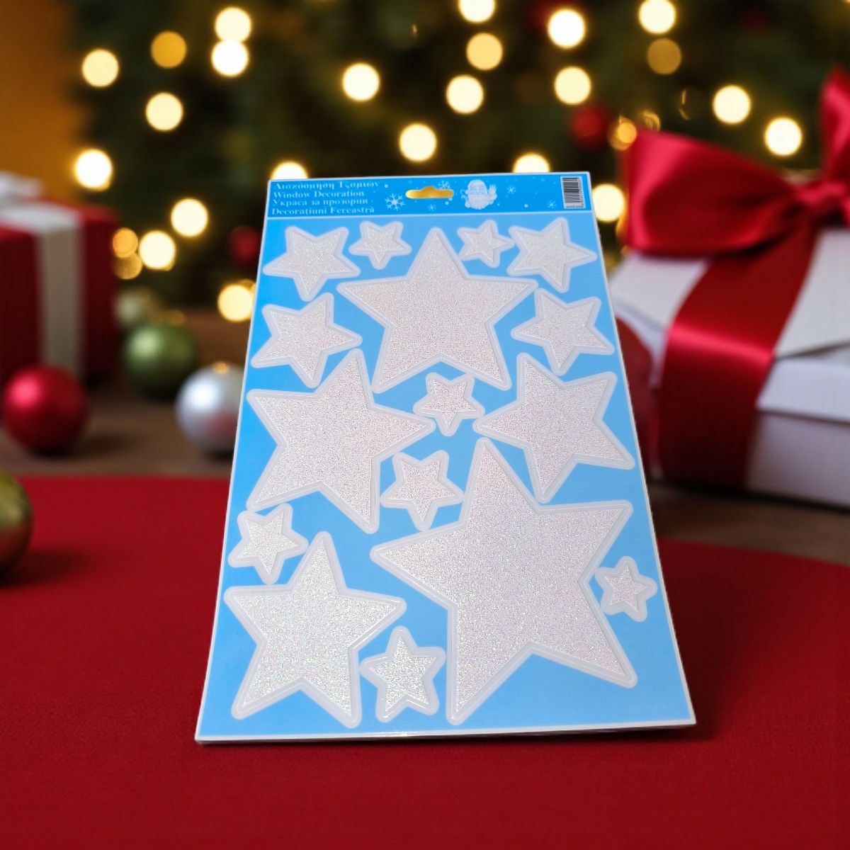 Kezdőlap » Karácsonyi dekorációk » Karácsonyi matricák » Karácsonyi ablakmatrica csillogó fehér csillagok 20×30 cm