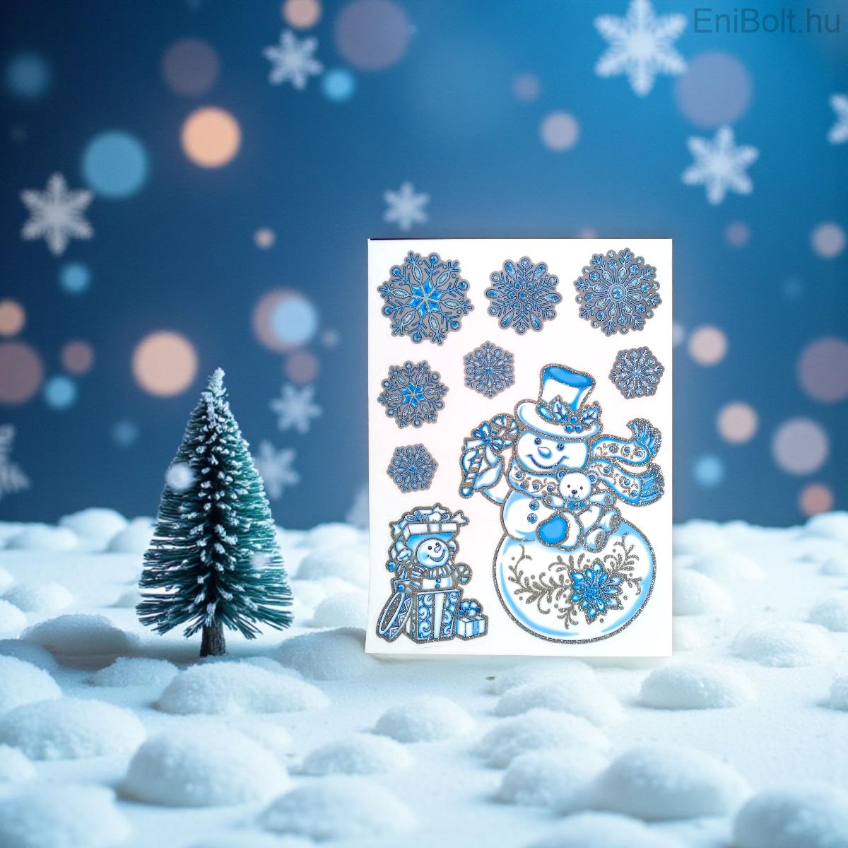 Varázsold mesebelivé otthonod karácsonyi dekorációját ezzel a hóemberes ablakmatricával! A csomag hóembert, ajándékokat és ezüst csillogó hópelyheket tartalmaz, melyek látványos ünnepi hangulatot teremtenek az ablakokon vagy tükrökön.