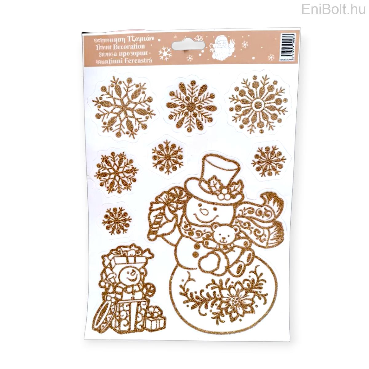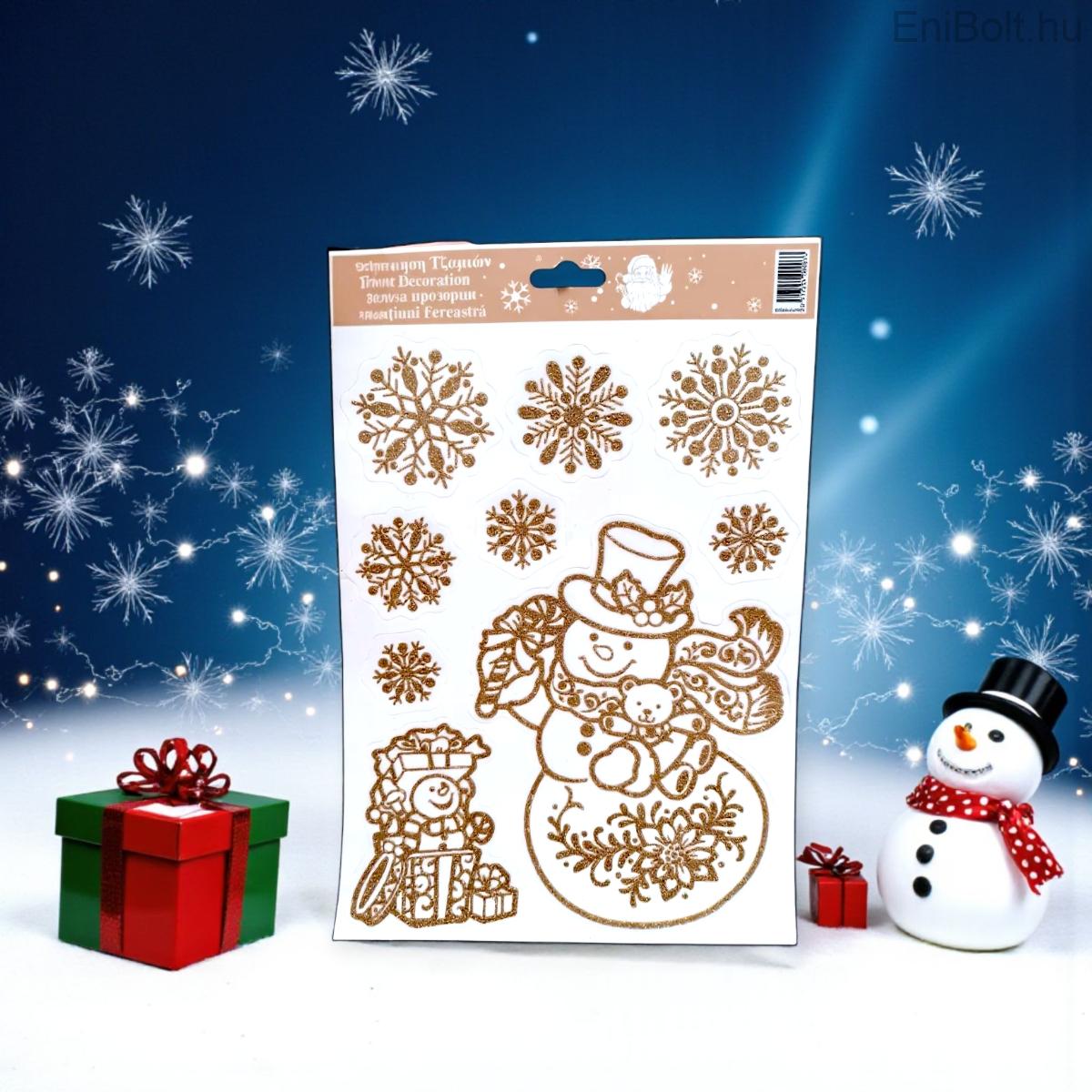 Kezdőlap » Karácsonyi dekorációk » Karácsonyi matricák » Karácsonyi ablakmatrica hópelyhek és hóember bronz csillámmal 20x30cm