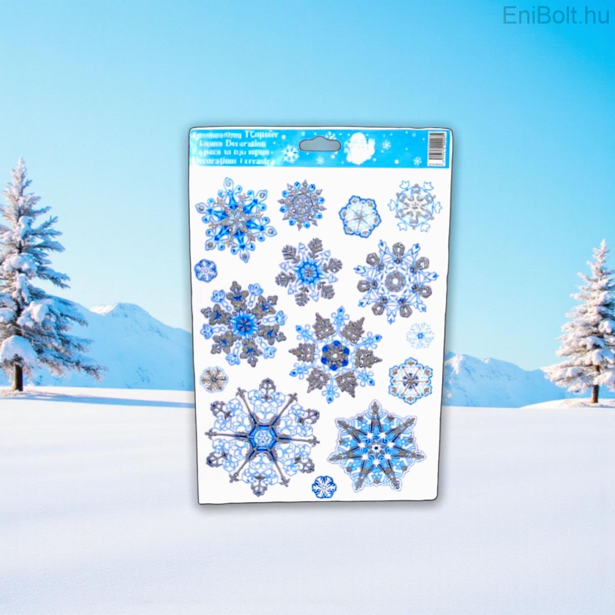 Kezdőlap » Karácsonyi dekorációk » Karácsonyi matricák » Karácsonyi ablakmatrica hópelyhekkel kék-ezüst 20x27cm
