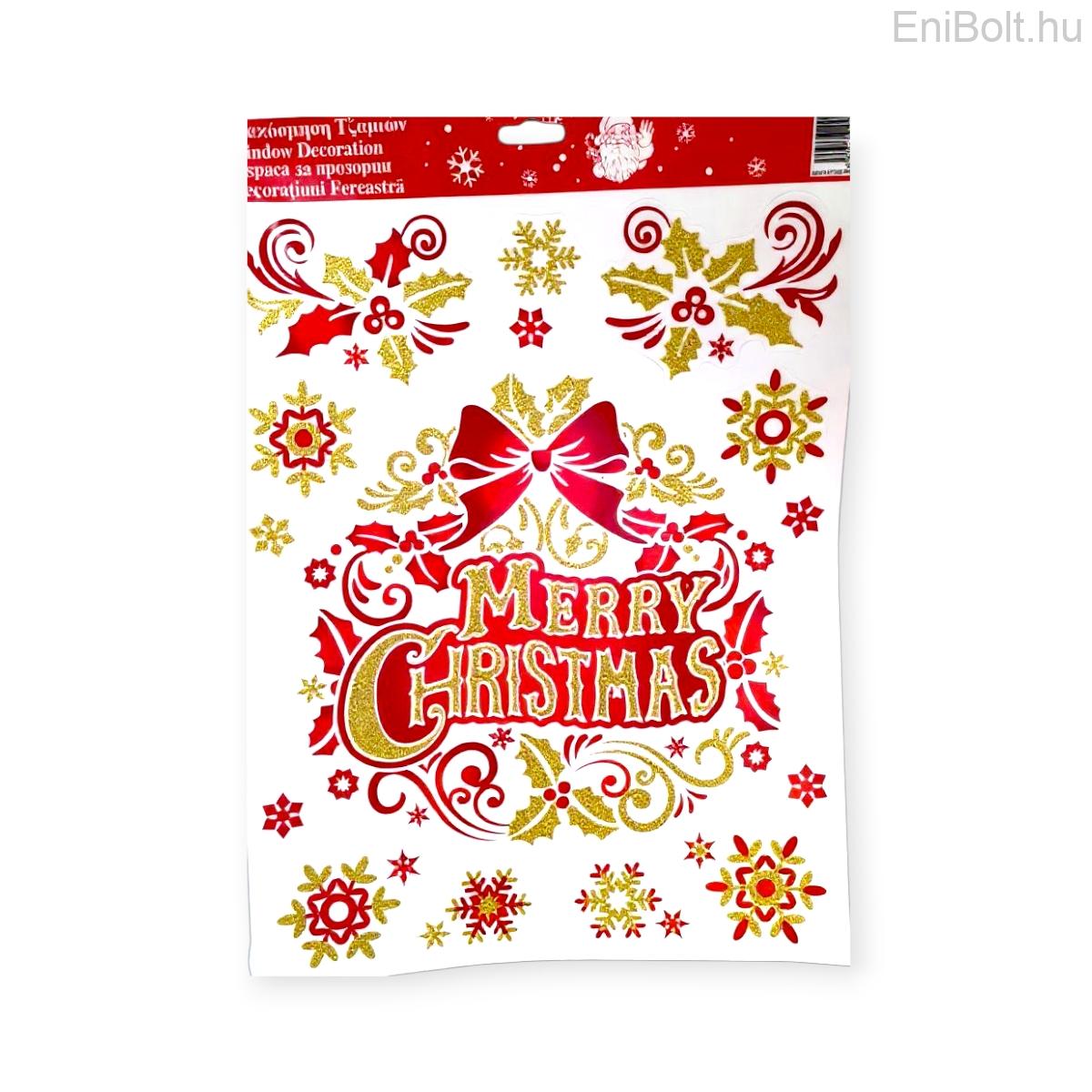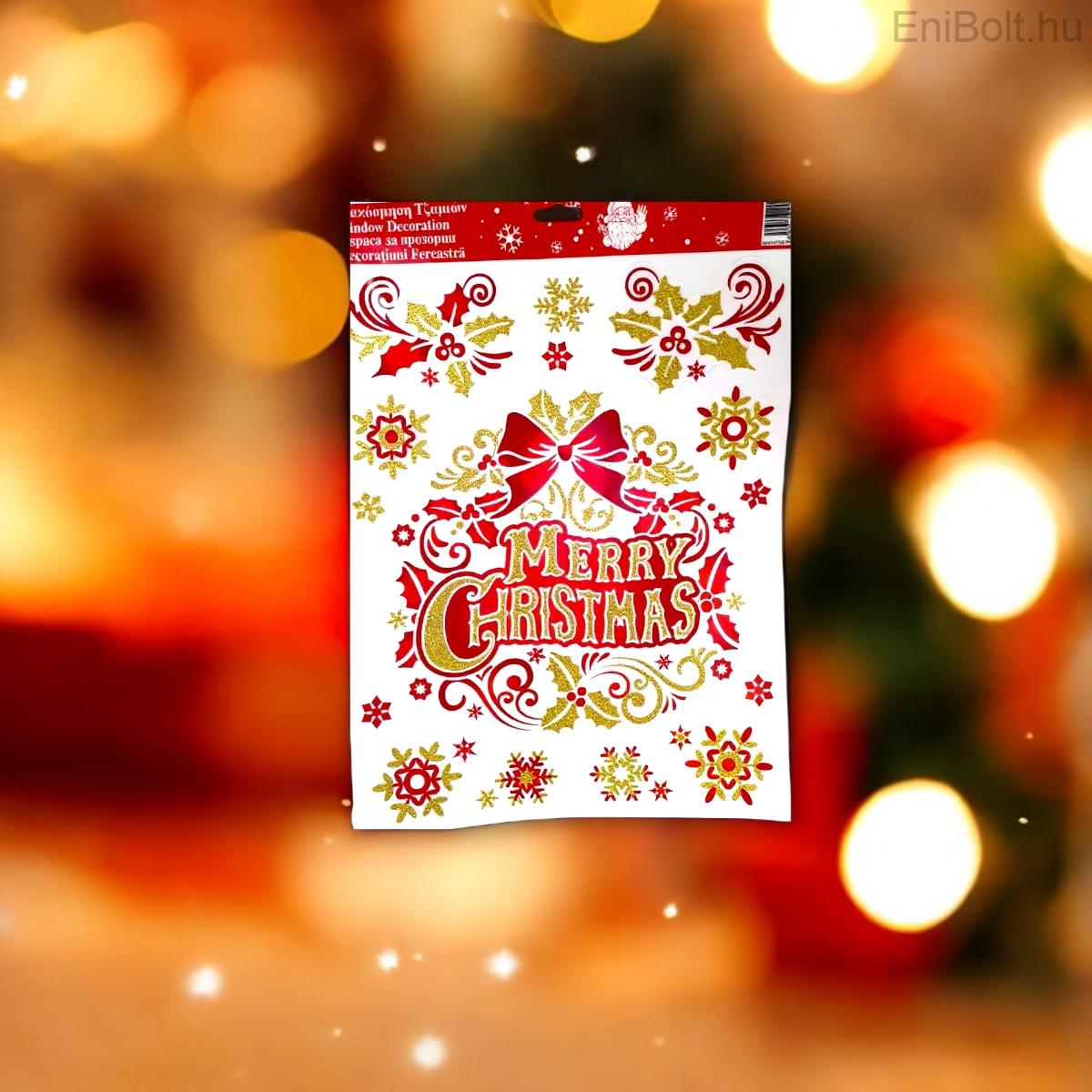 Kezdőlap » Karácsonyi dekorációk » Karácsonyi matricák » Karácsonyi ablakmatrica koszorú „Boldog Karácsonyt” piros-arany csillámos 30x38cm