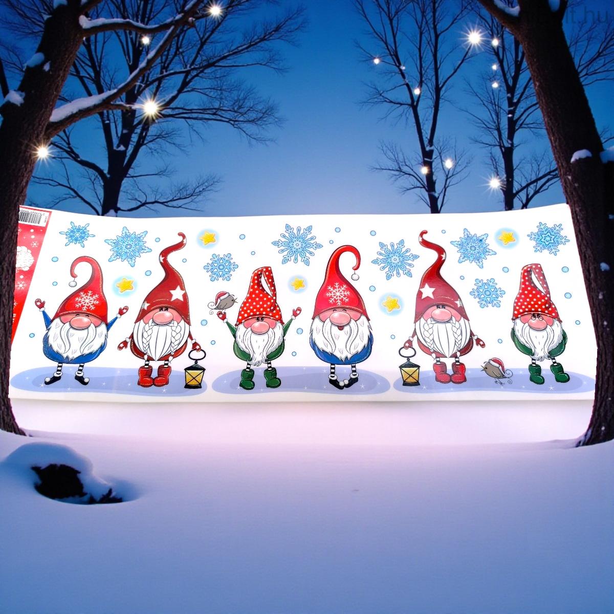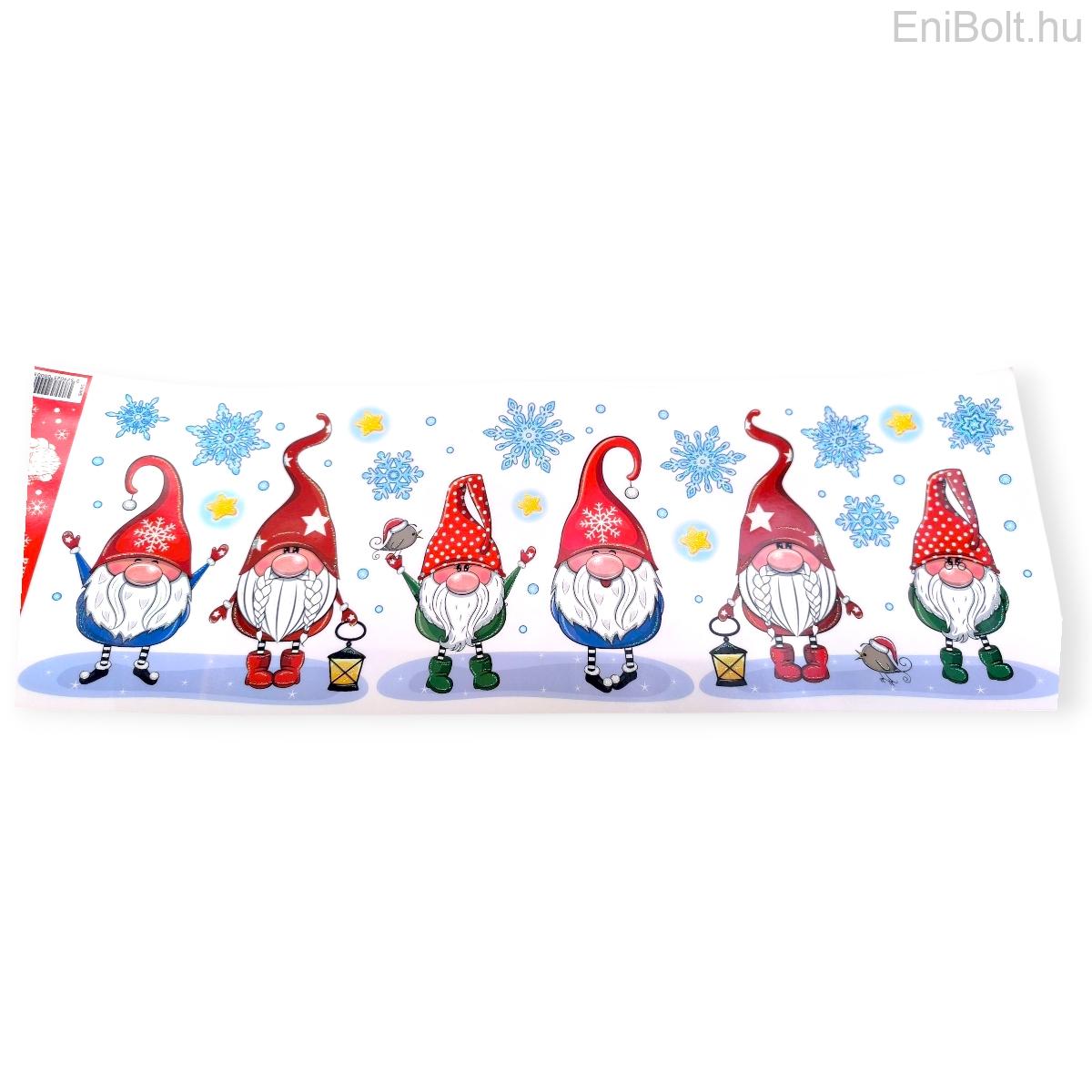 Karácsonyi ablakmatrica manókkal csillámmal 60x20cm