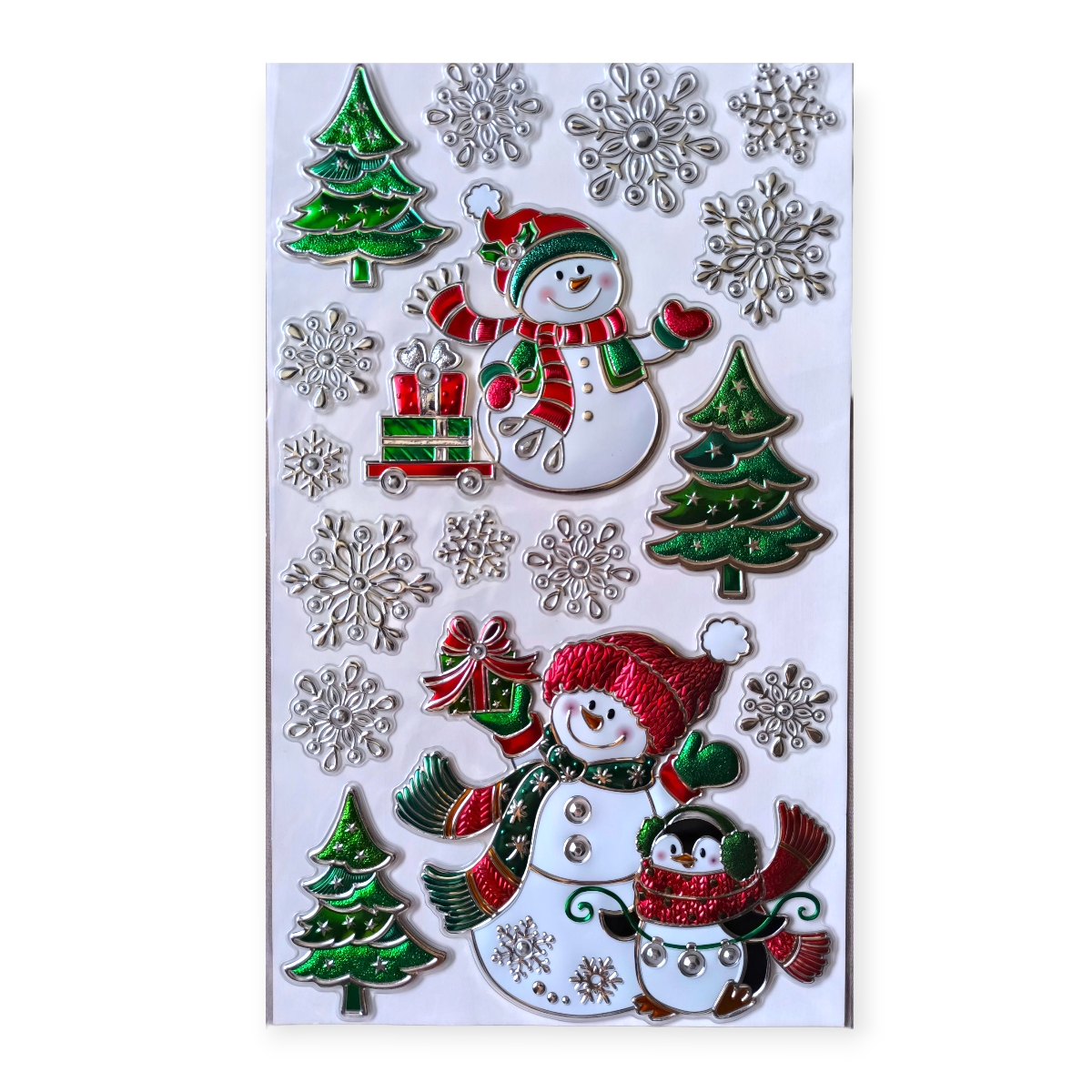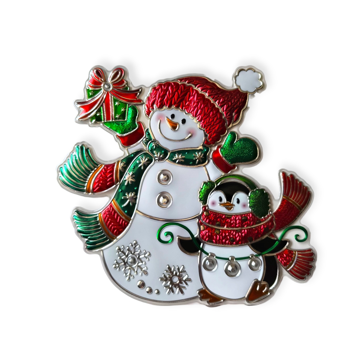 Dobd fel otthonodat ezzel a színes karácsonyi matricával, amely mosolygó hóembereket, pingvint és hópelyheket ábrázol. Tökéletes választás ablakokra, tükrökre vagy falakra, hogy az ünnepi időszak még meghittebb és játékosabb legyen.