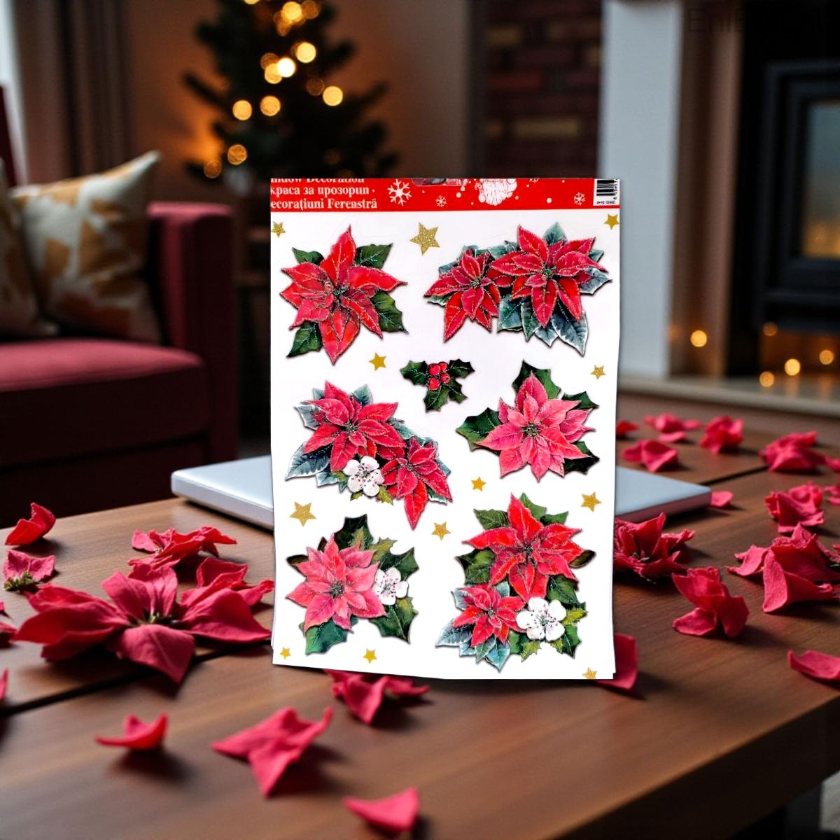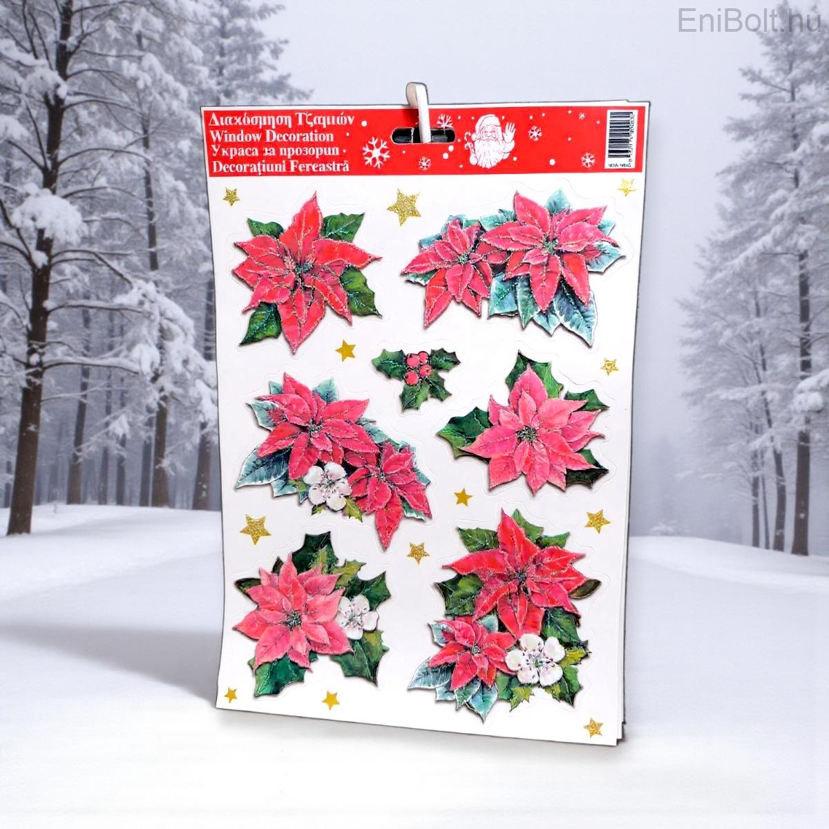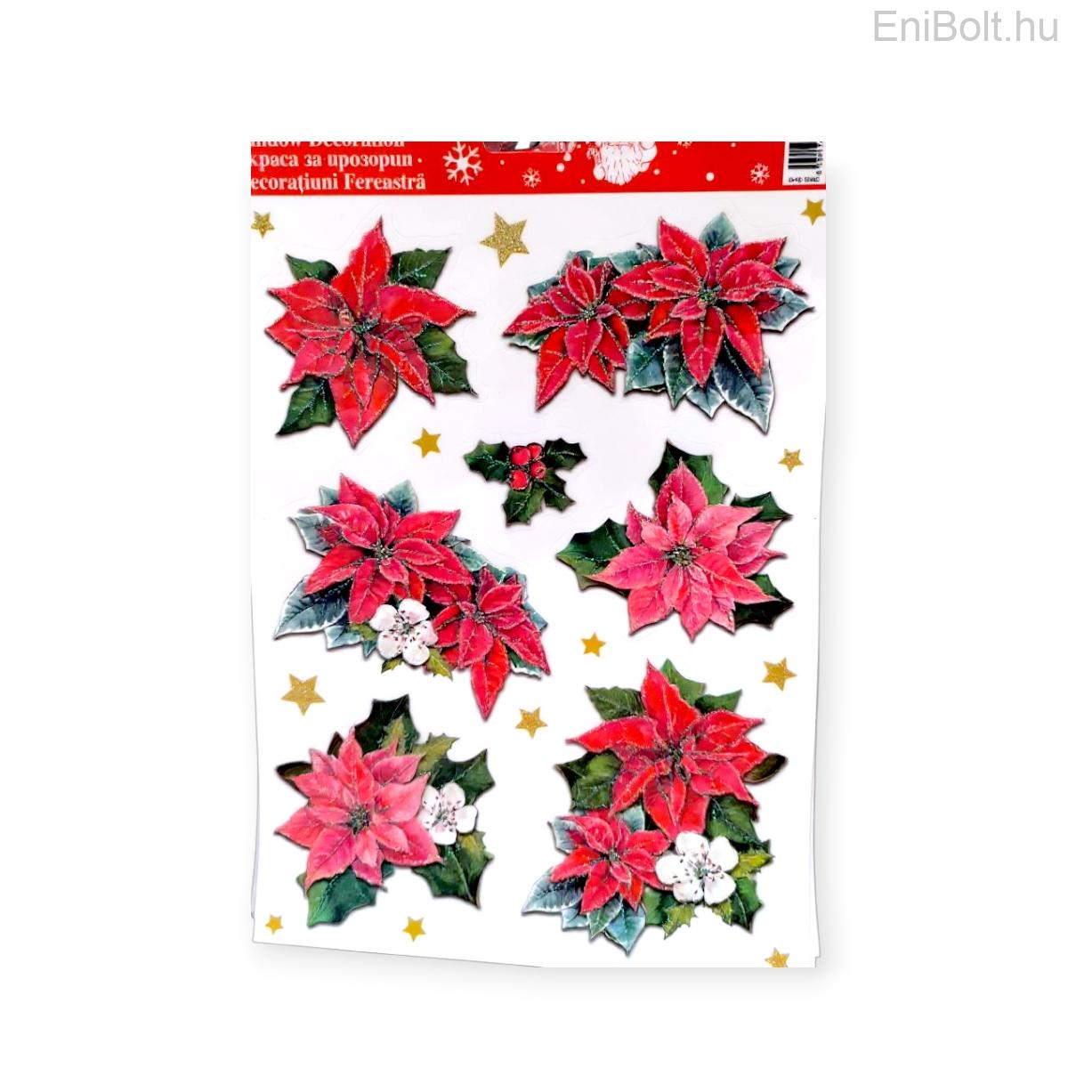 Kezdőlap » Karácsonyi dekorációk » Karácsonyi matricák » Karácsonyi ablakmatrica színes virágokkal és csillámmal 20x30cm