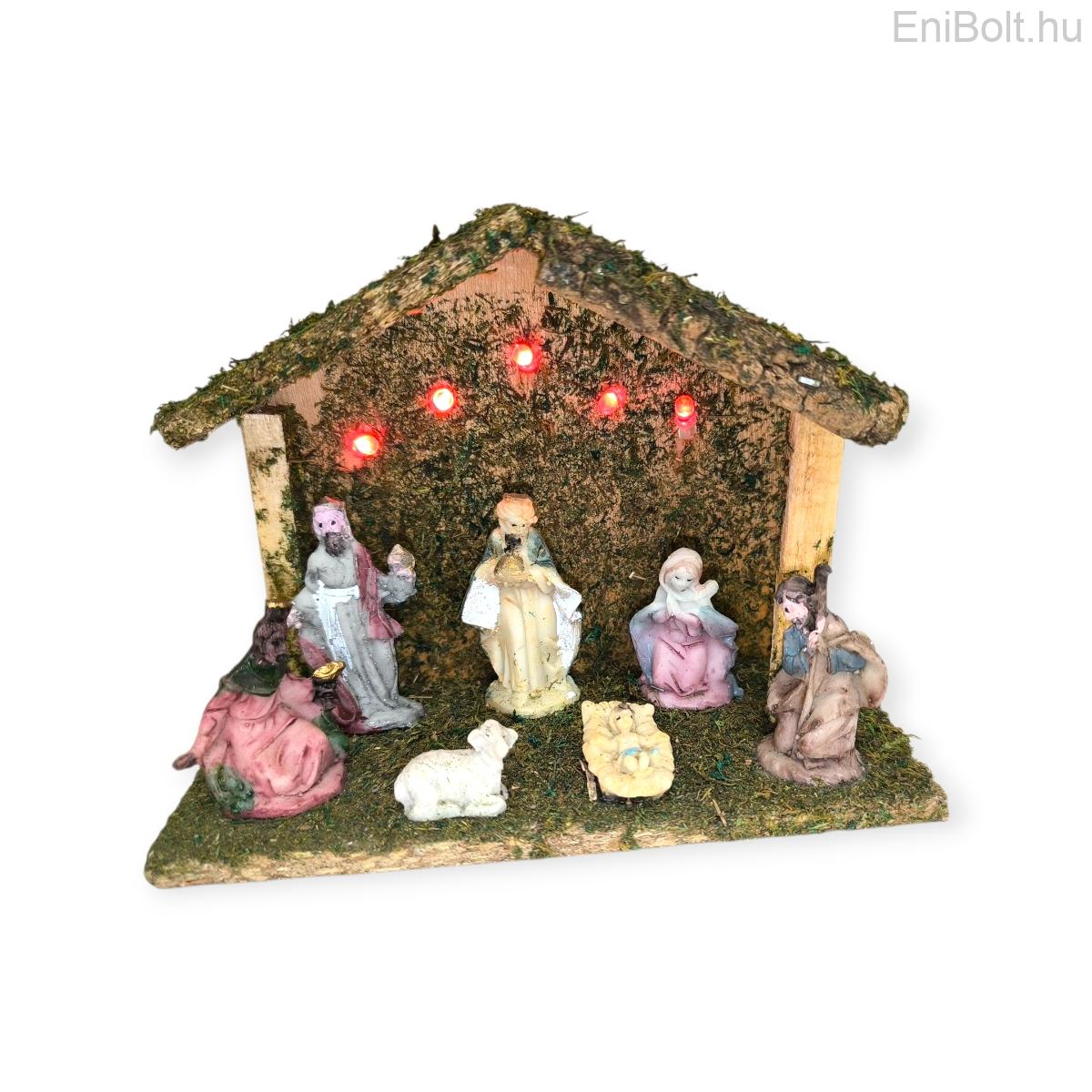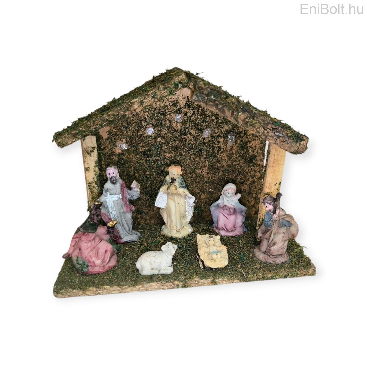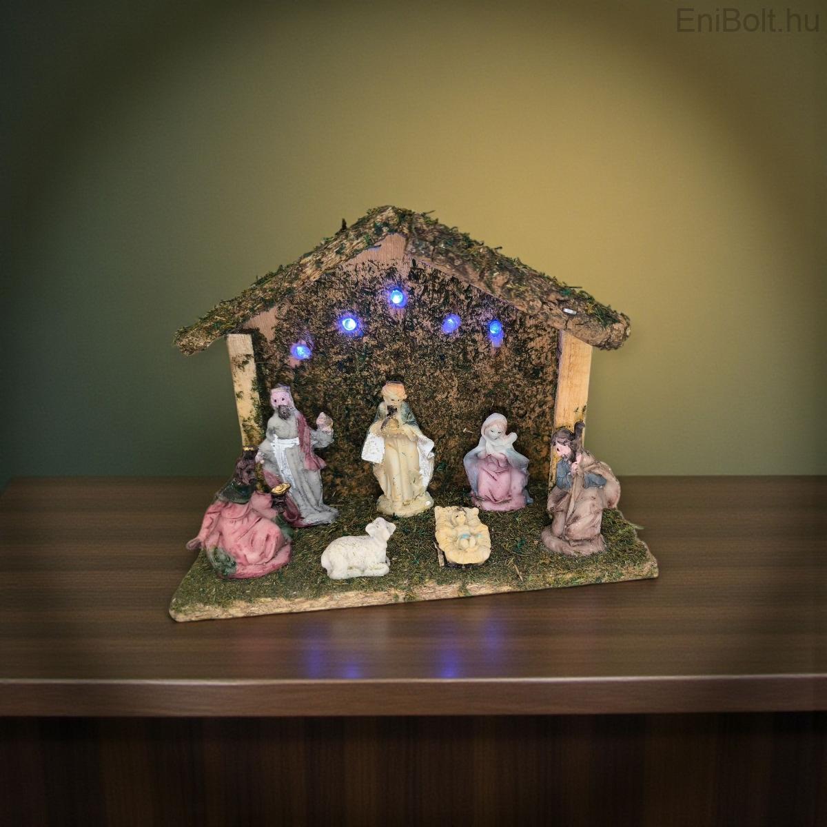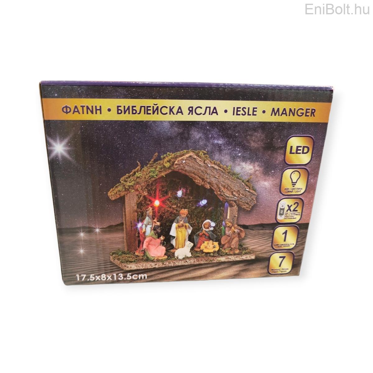 Kezdőlap » Karácsonyi dekorációk » Betlehemek, Mikulás csizmák » Karácsonyi betlehem jászollal LED világítással és 7 figurával – 17,5x7,5x13 cm dekor