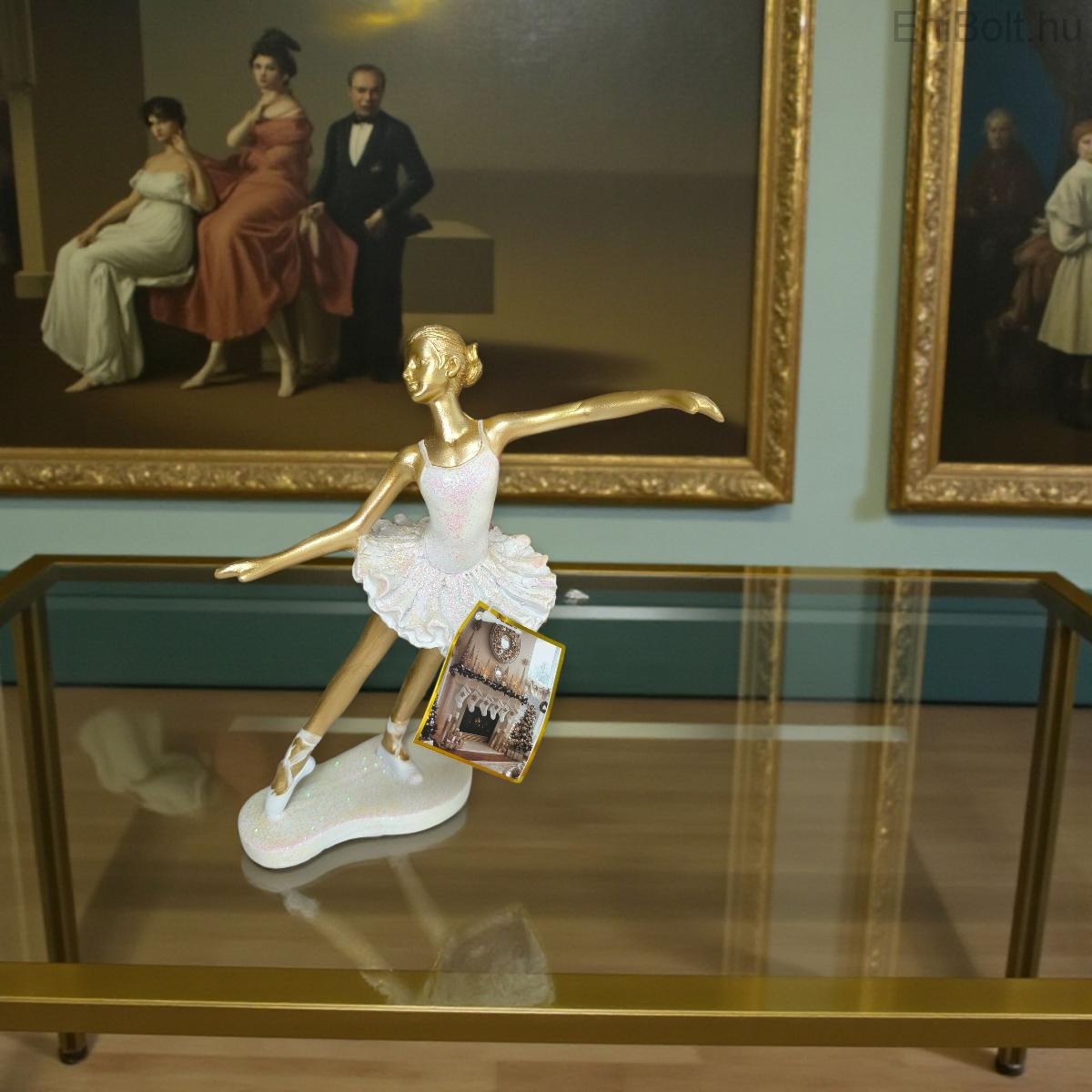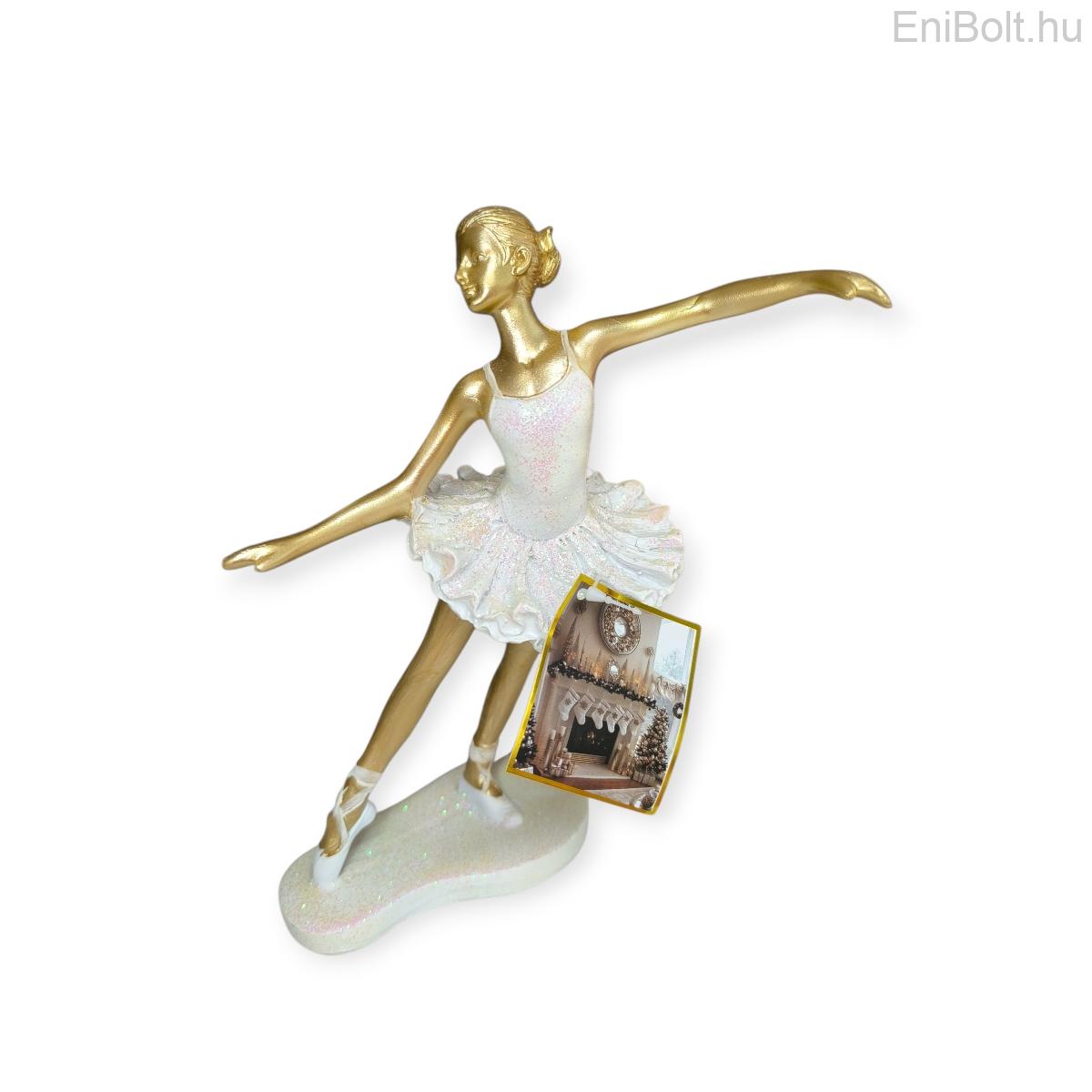 Karácsonyi dekoráció arany balerina irizáló fehér szoknyával 20 cm