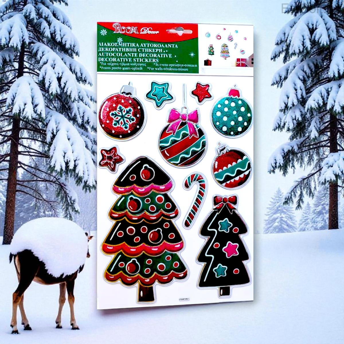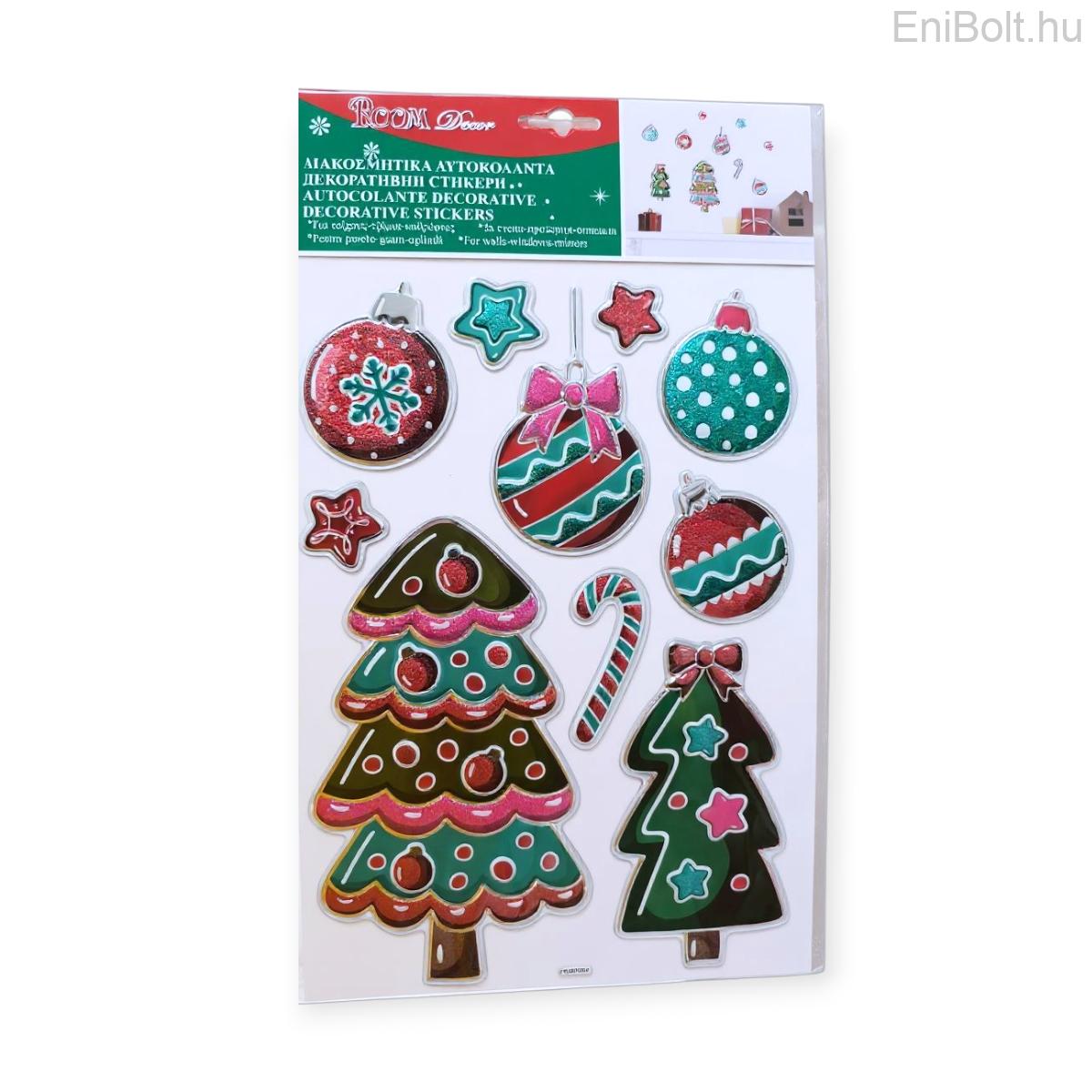 Kezdőlap » Karácsonyi dekorációk » Karácsonyi matricák » Karácsonyi dekoratív matricák fenyőfákkal, díszekkel és csillagokkal – 21x36cm