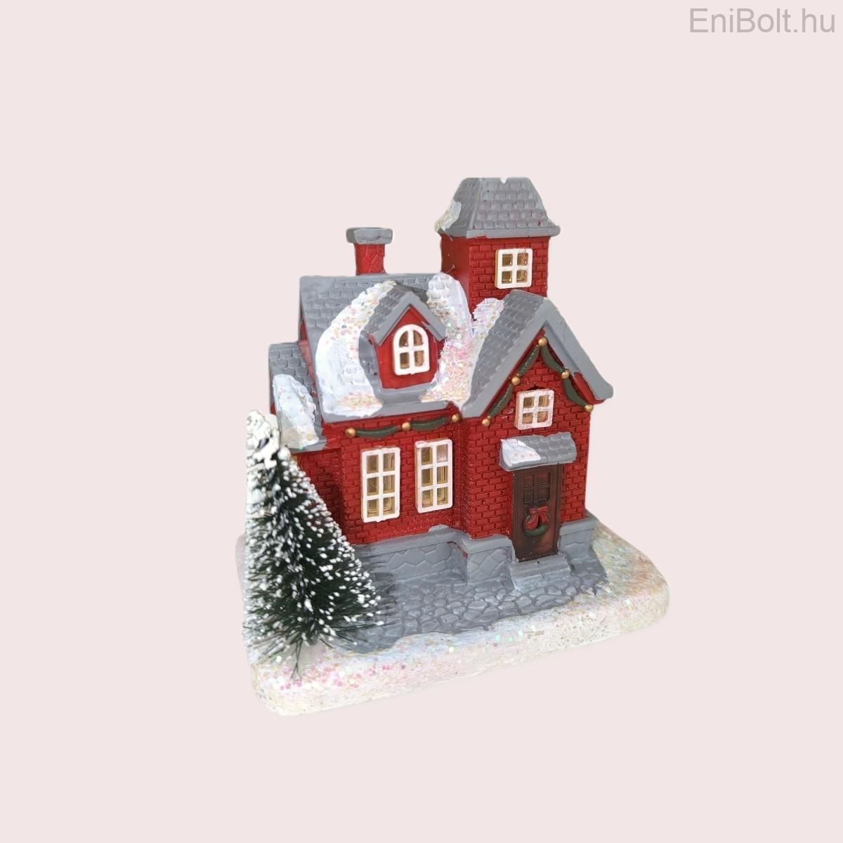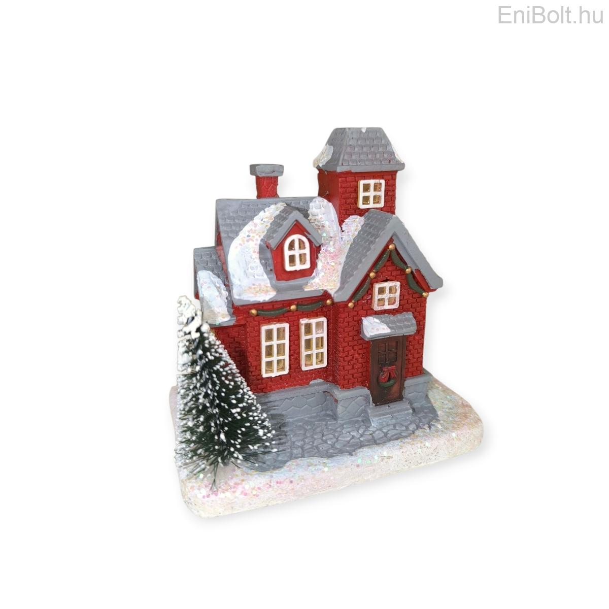 Kezdőlap » Karácsonyi dekorációk » Különleges díszek » Karácsonyi falu dekoráció LED-es vörös ház és zöld fa 11 cm