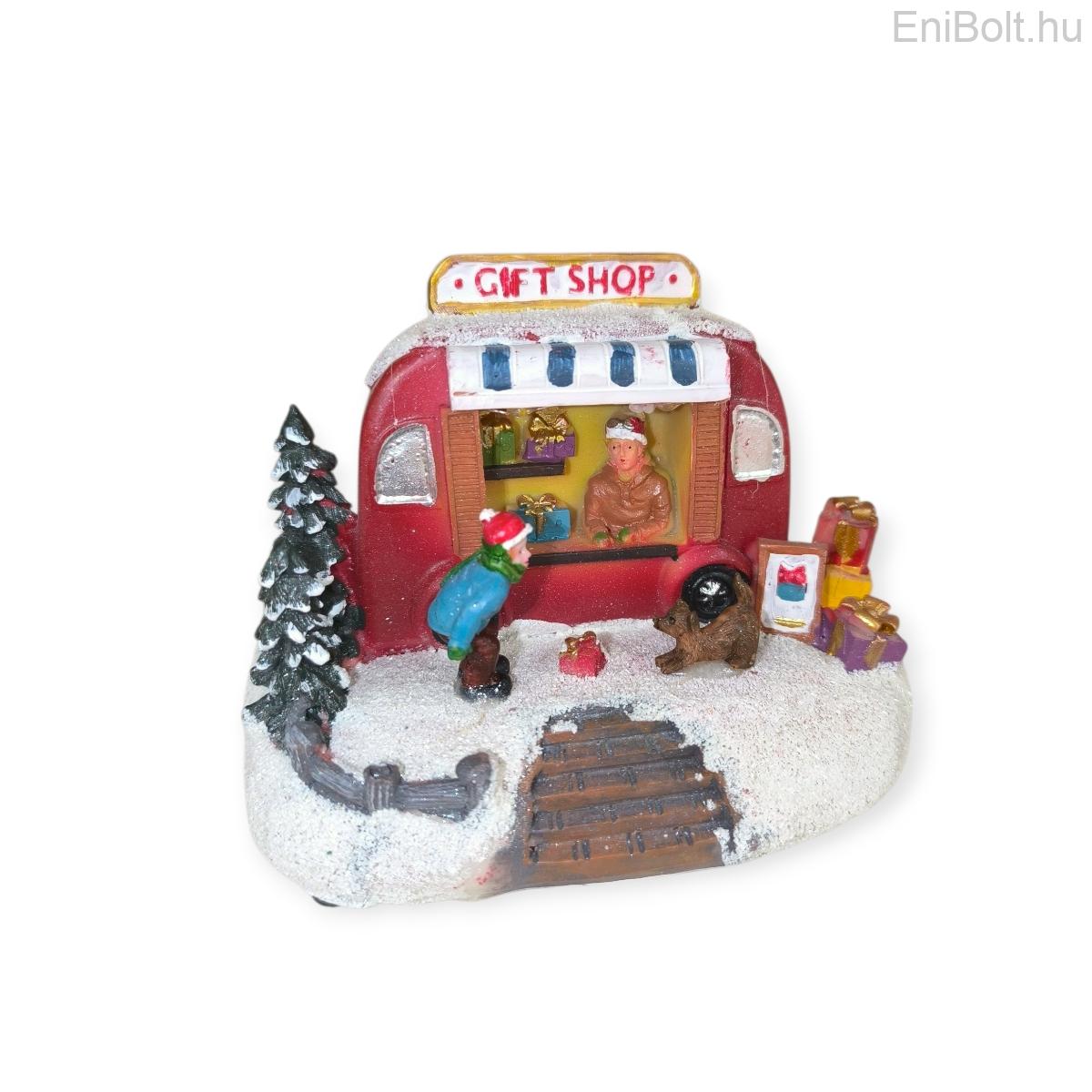 Kezdőlap » Karácsonyi dekorációk » Különleges díszek » Karácsonyi falu dekoráció ajándékbolt LED világítással 10,5 cm