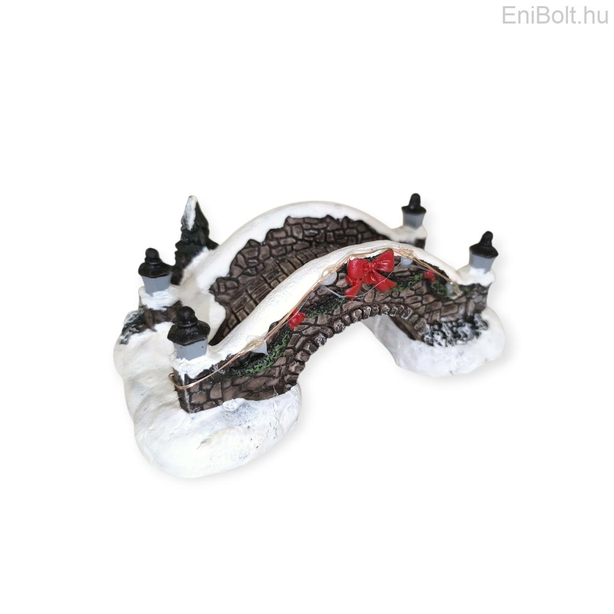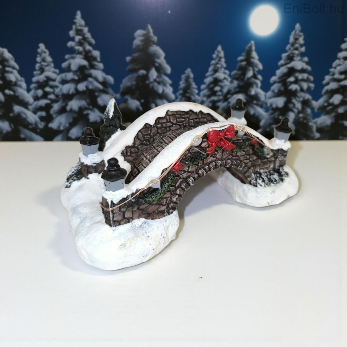 Karácsonyi falu dekoráció híd LED világítással 15 cm