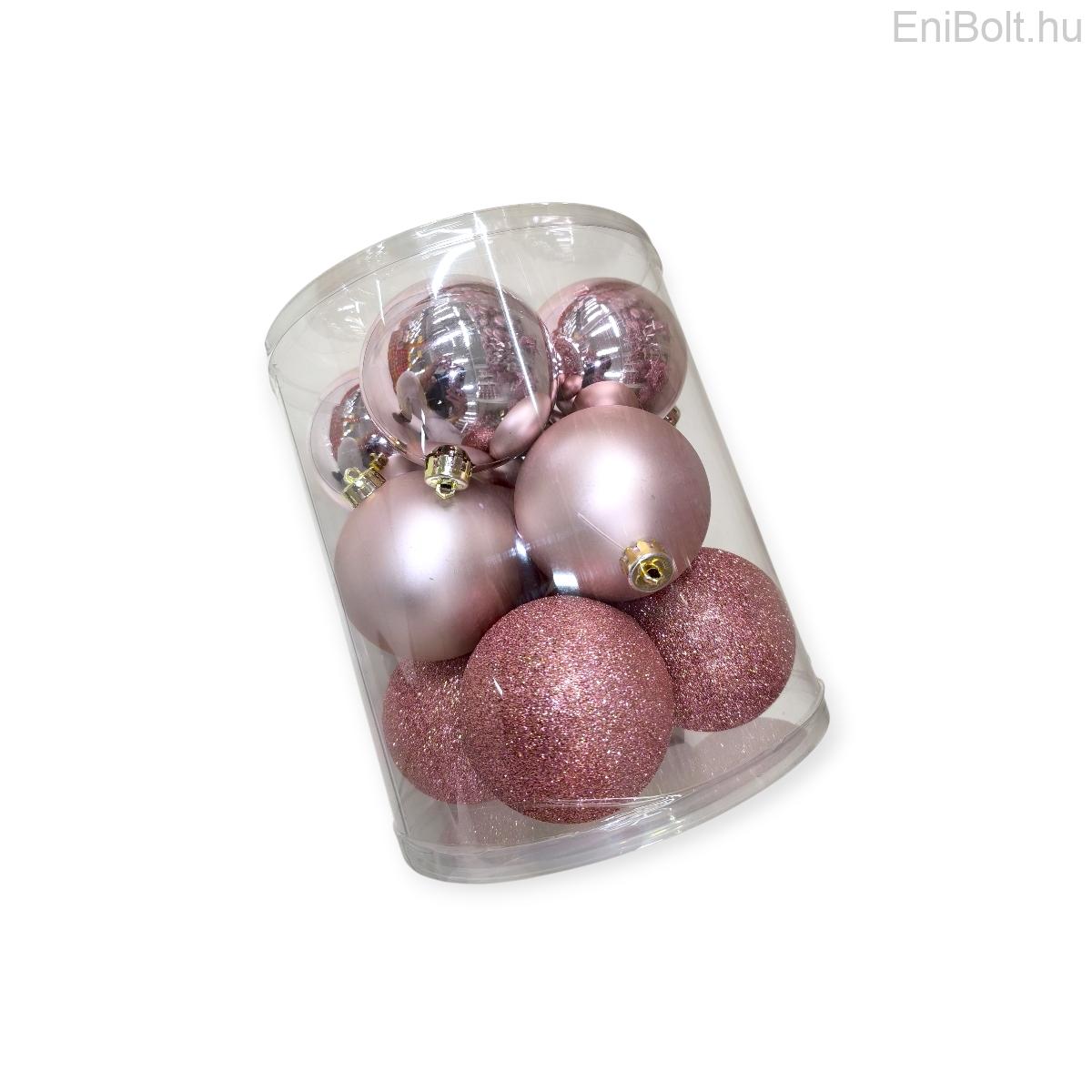 Karácsonyi gömbök készlet – rózsaszín, piros, csillogó és bézs – 12 db (5 cm)