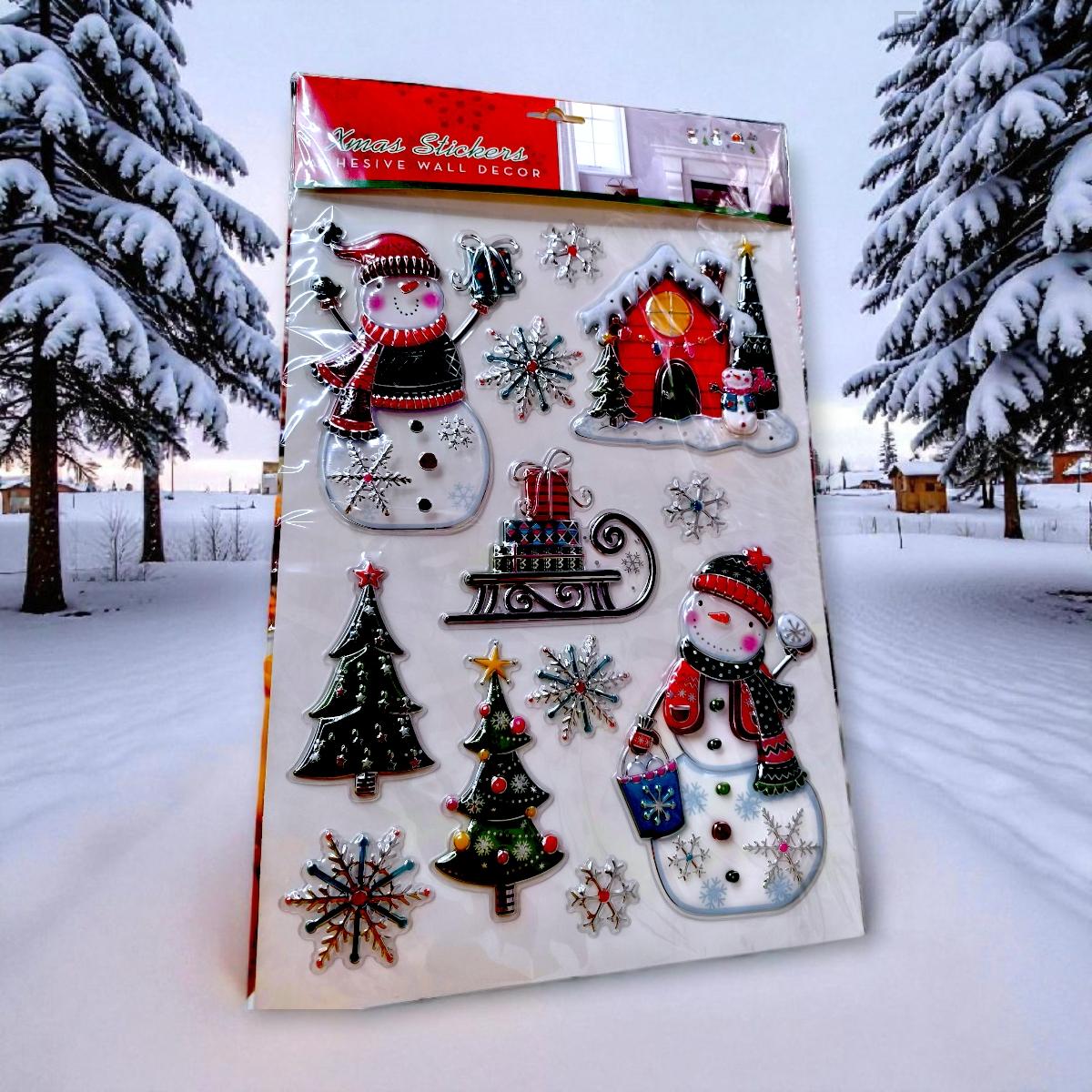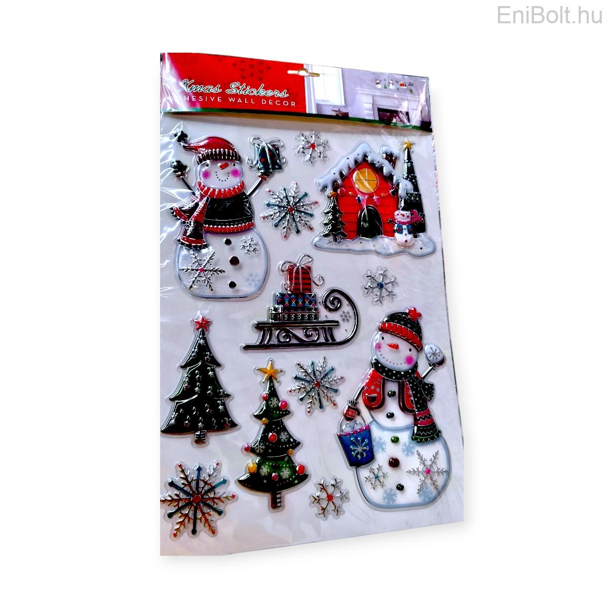 Dekoratív karácsonyi matricák hóember mintával, piros, zöld és ezüst színekben. Ideális falak, ablakok vagy tükrök díszítésére, hogy otthonodba meghitt, ünnepi hangulatot varázsolj.