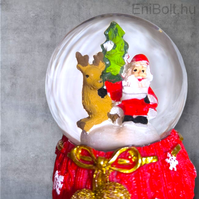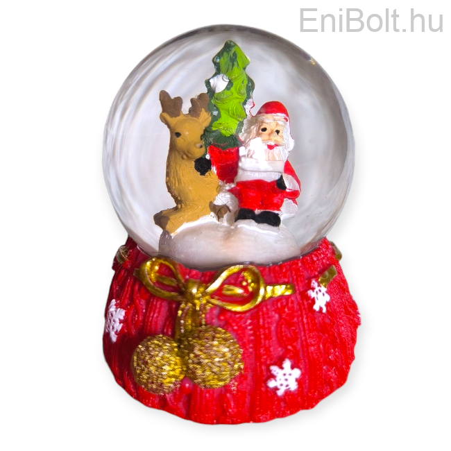 • Díszes karácsonyi hógömb Mikulással, fenyőfával és rénszarvassal