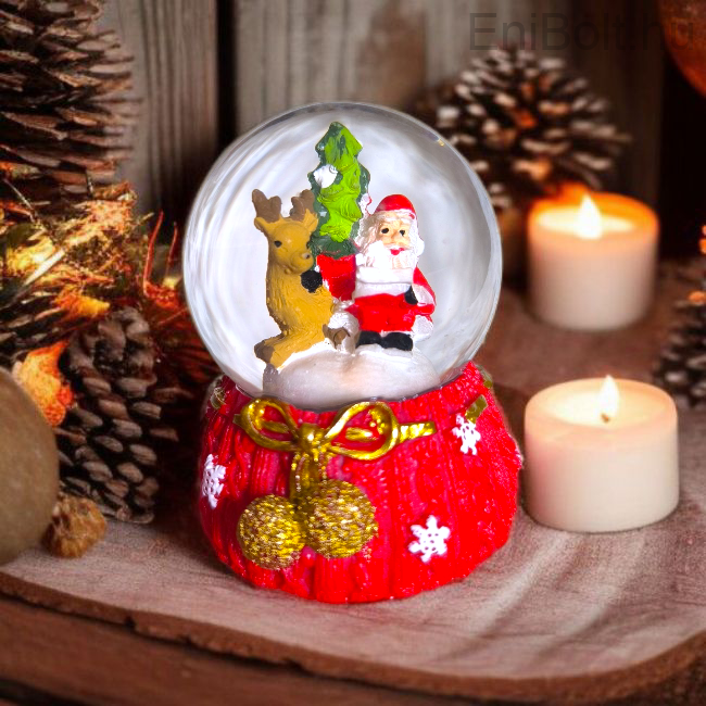 Ez a bájos karácsonyi hógömb Mikulást, egy fenyőfát és egy rénszarvast rejt a gömb belsejében, amely ünnepi hangulatot varázsol otthonodba. A piros, faragott mintás talp különleges megjelenést biztosít, míg a 4,5 × 6 cm-es méret tökéletes választás polcra, asztalra vagy ajándéknak. Igazi karácsonyi klasszikus!
