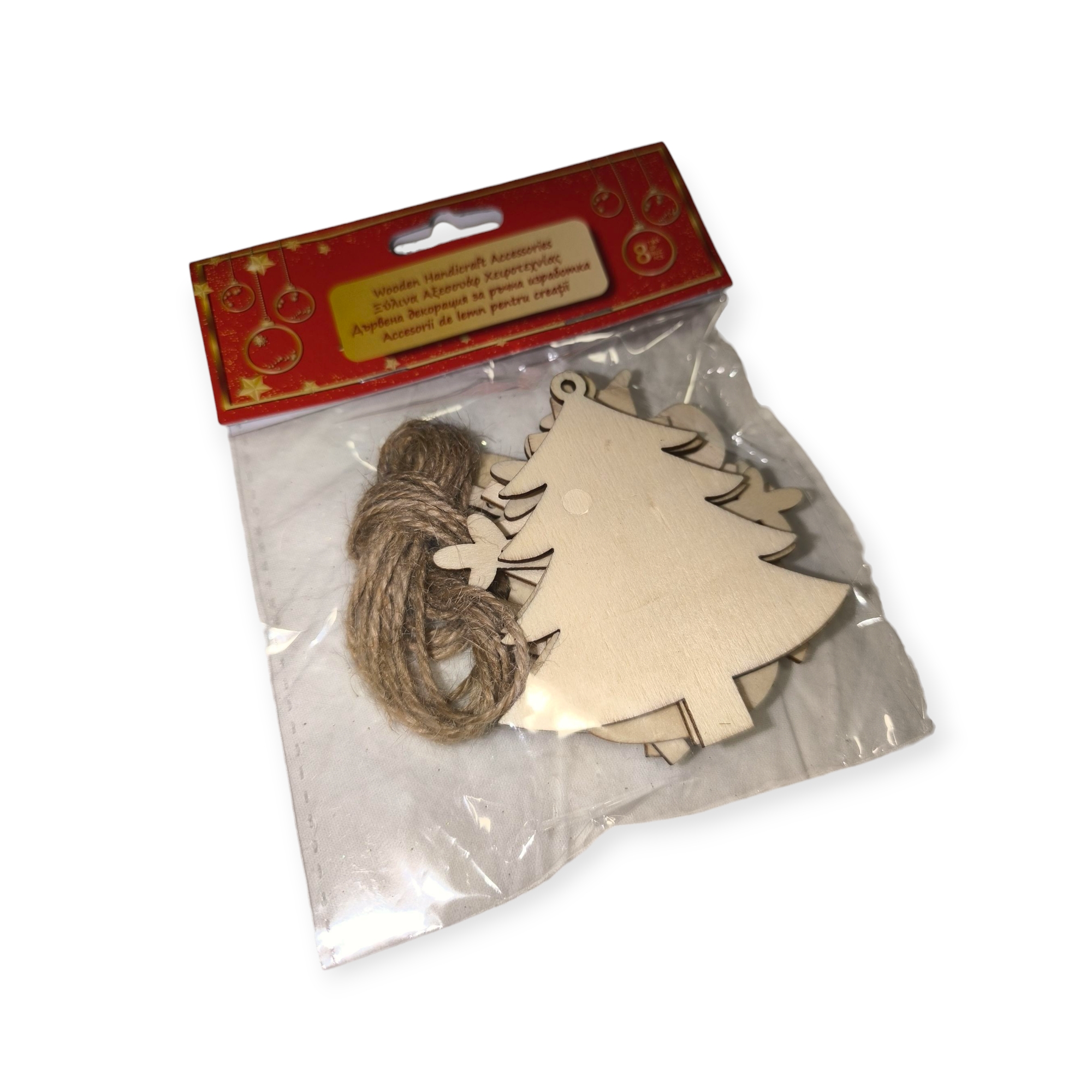 Kezdőlap » Karácsonyi dekorációk » Csúcsdíszek, Kreatív kellékek » Karácsonyi kézműves készlet fa díszekkel – 8 db