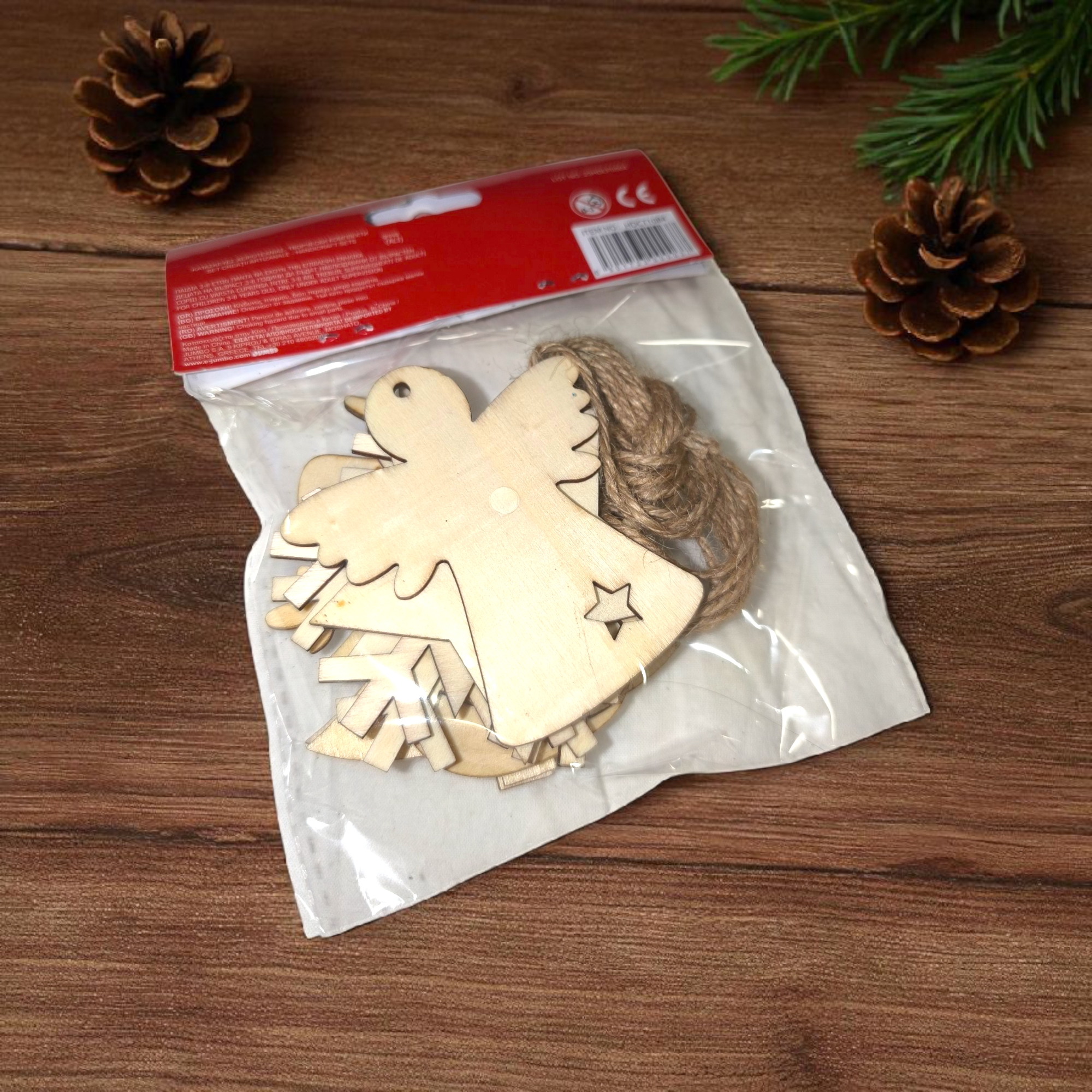 Készíts egyedi karácsonyi dekorációt ezzel a fa kézműves szettel, amely különböző mintákat tartalmaz: hóember, csillag, kis angyal, rénszarvas, két hópehely és két karácsonyfa. A csomaghoz kötél is tartozik, így a díszek könnyedén felakaszthatók a fára, ajtóra vagy akár ablakba.