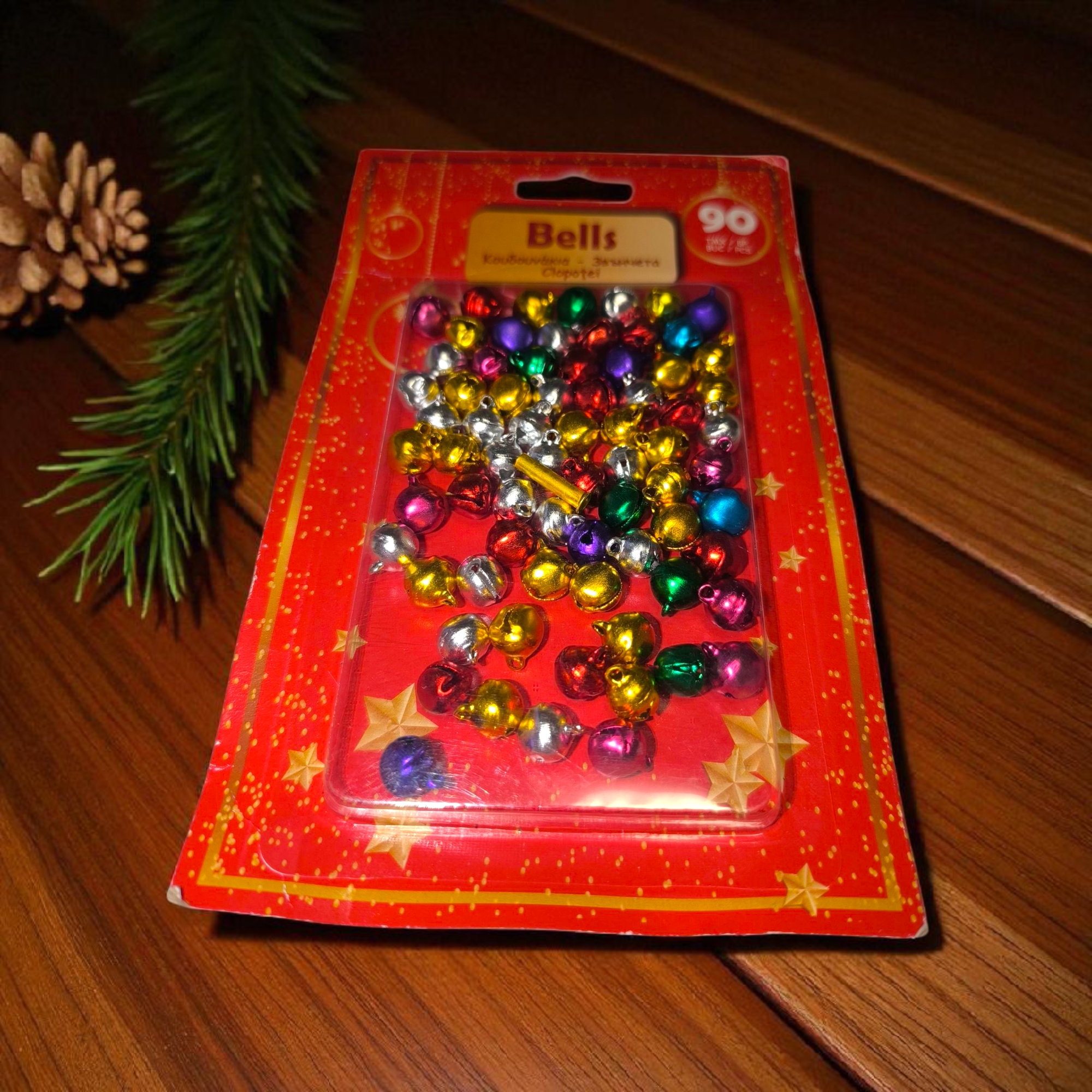 Kezdőlap » Karácsonyi dekorációk » Csúcsdíszek, Kreatív kellékek » Karácsonyi kézműves kiegészítők – 90 db színes harang dekoráció