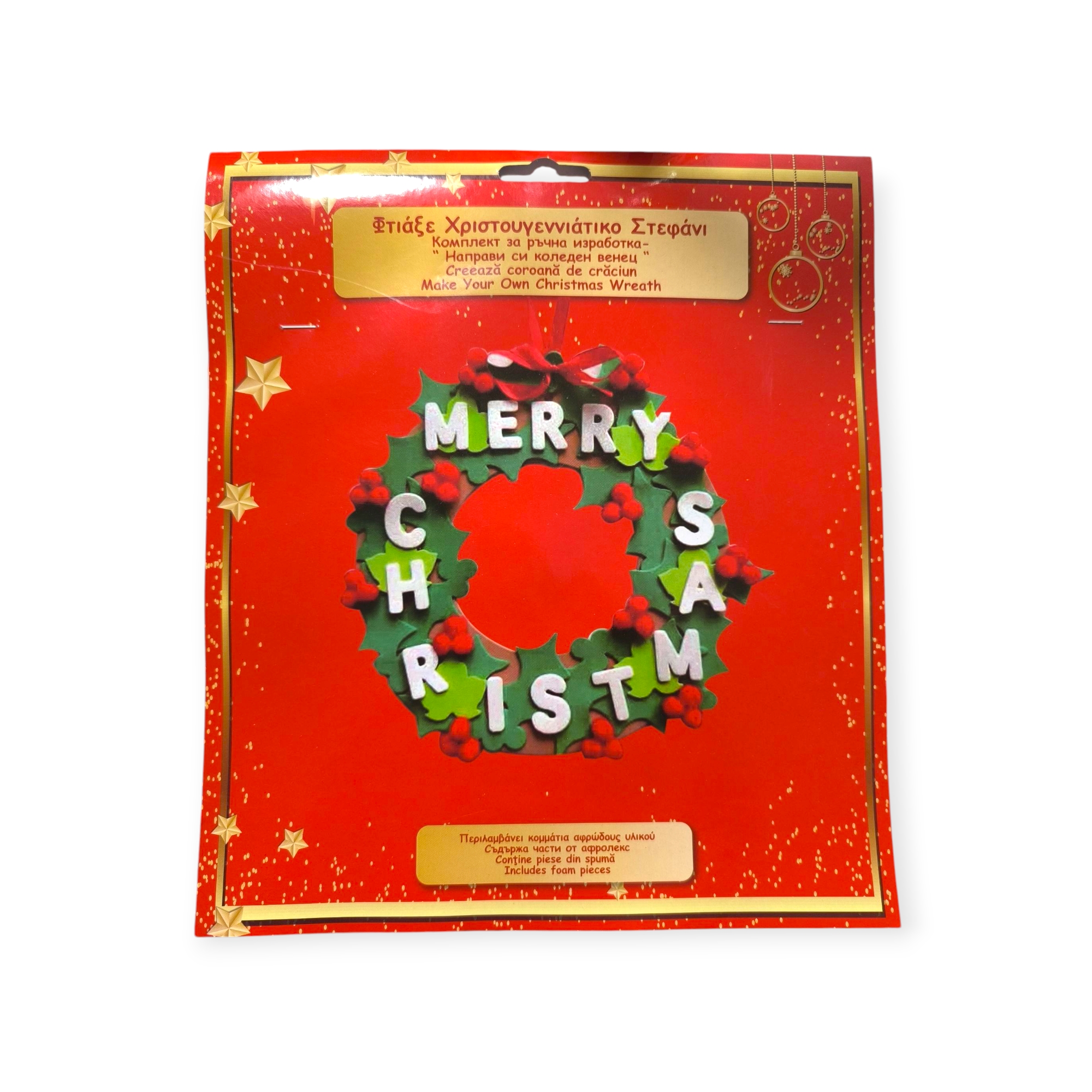 Alkoss saját ünnepi dekorációt ezzel a karácsonyi kopogtató készítő kreatív szettel! A csomag tartalmaz csillogó darabokat, piros pom pomokat és egy piros szalagot, amellyel könnyedén elhelyezheted az elkészült koszorút. Ideális kreatív tevékenység az ünnepi készülődéshez, mely közben egyedi díszt készíthetsz otthonodba.