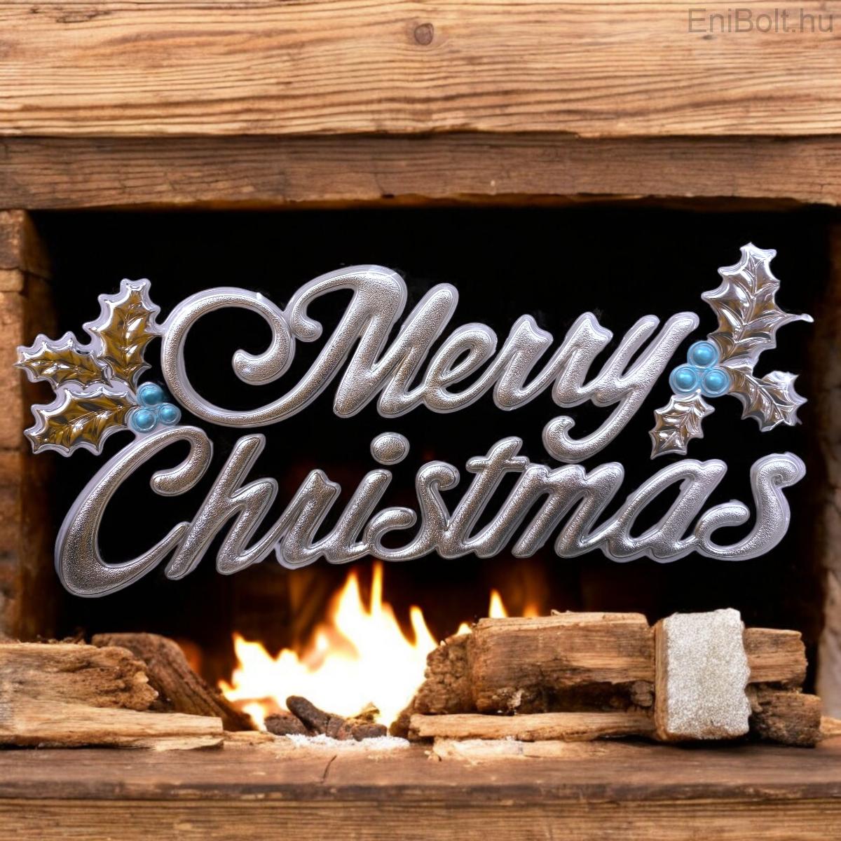 Karácsonyi matrica "Boldog Karácsonyt" felirattal és fagyönggyel ezüst 38,5x16cm