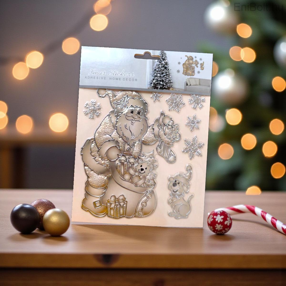 Kezdőlap » Karácsonyi dekorációk » Karácsonyi matricák » Karácsonyi matrica Mikulás kutyával és ajándékokkal pezsgőbézs 18x23cm