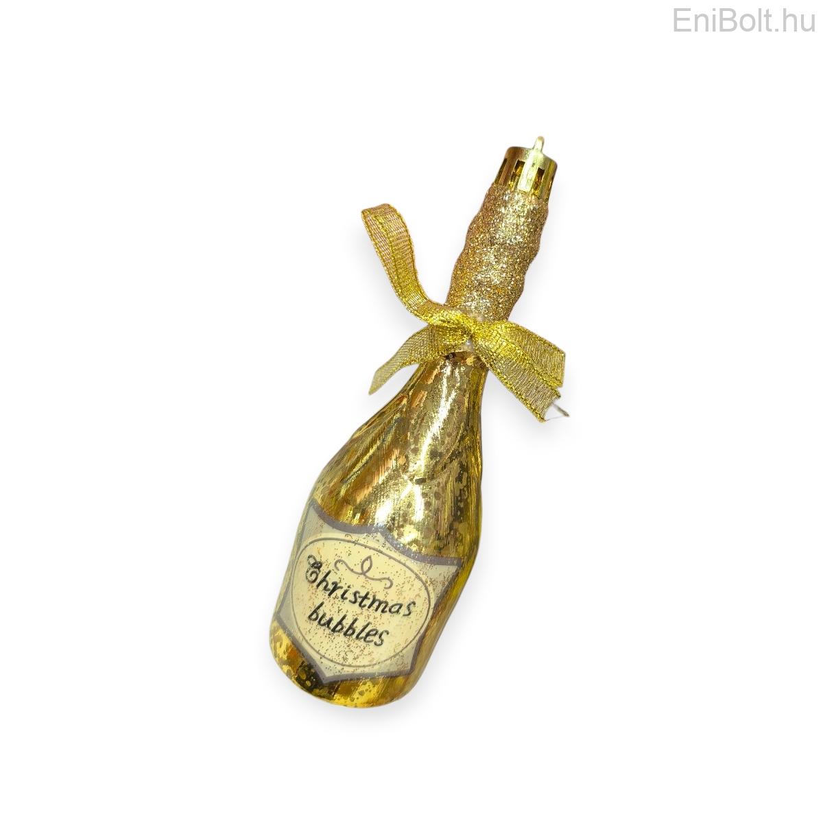 Kezdőlap » Karácsonyi dekorációk » Karácsonyfa gömbök » Pezsgő díszek » Karácsonyi üveg alakú dísz arany masnival – bézs-arany, 12 cm