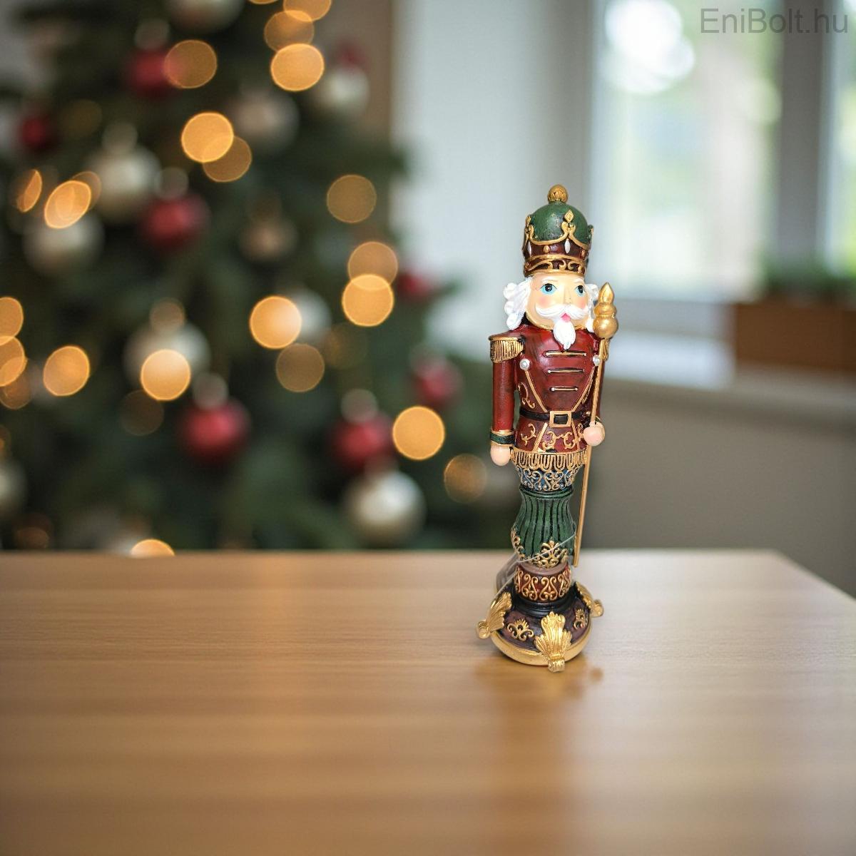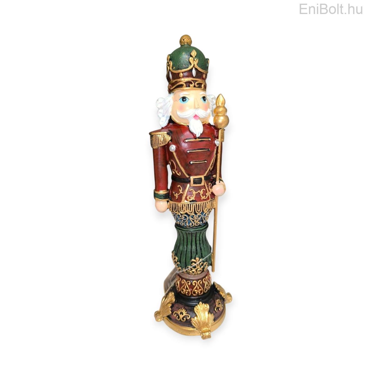 Katona karácsonyi dekoráció piros egyenruhával és arany jogarral 27 cm