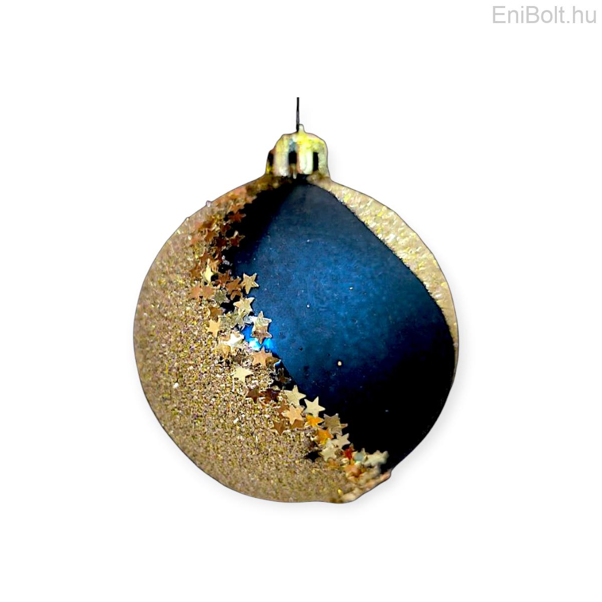 Kék-arany karácsonyfadísz gömb csillámmal 8cm