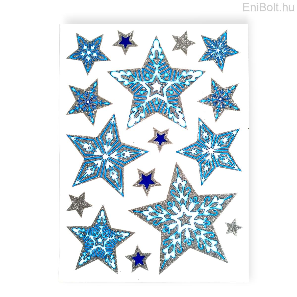 Kezdőlap » Karácsonyi dekorációk » Karácsonyi matricák » Kék-ezüst csillagos karácsonyi ablakmatrica – csillogó 20×30 cm