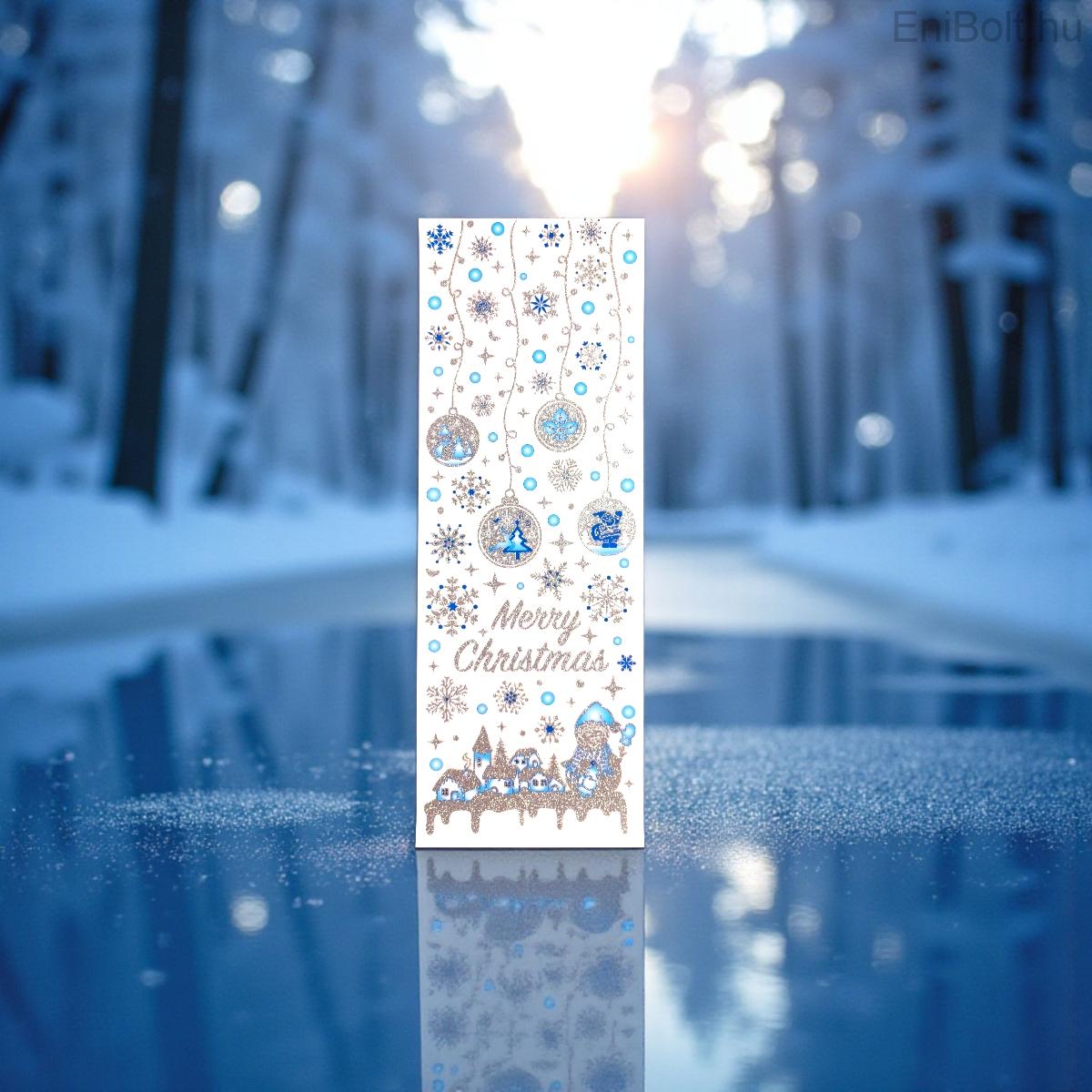 Varázsold otthonodat mesebeli téli tájjá ezzel a kék-ezüst csillámos karácsonyi ablakmatricával.