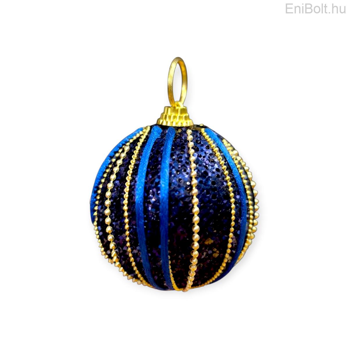 Kezdőlap » Karácsonyi dekorációk » Karácsonyfa gömbök » Kék díszek » Kék-lila hab gömb karácsonyfadísz csillogó ezüst csipkével 8cm