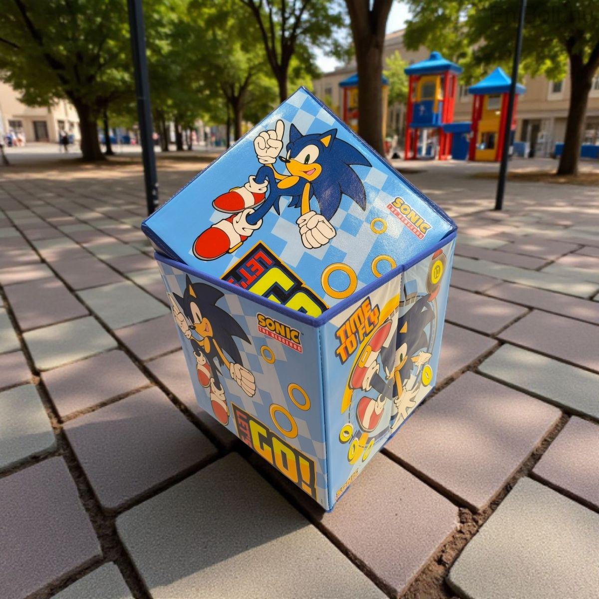 Praktikus és dekoratív tárolódoboz, amely egyben kényelmes szövet zsámoly is. Erős vázzal és Sonic mintával készült, ideális ruhák, könyvek, CD-k, DVD-k vagy kisebb játékok rendszerezéséhez. Strapabíró kialakításának köszönhetően akár ülőalkalmatosságként is használható, maximum 15 kg terhelhetőséggel.
