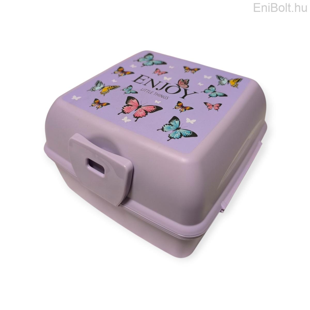 Lila pillangós uzsonnás doboz "Enjoy" felirattal Ez a lila színű, pillangómintás uzsonnás doboz kedves „Enjoy” felirattal nemcsak szép, hanem praktikus választás iskolába, óvodába vagy kirándulásra. BPA-mentes műanyagból készült, biztonsági zárral és...