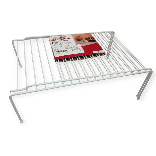 Modern megjelenésű, fémes fehér színű kihúzható rendszerező polc, amely két egymásba tolható részből áll, így összesen akár 68 cm hosszúvá is alakítható. Ideális konyhapultra, polcra, fürdőszobai szekrénybe vagy kamrába. Segítségével rendezetten tárolhatók a kisebb tárgyak, miközben könnyen hozzáférhetők maradnak. A masszív fém szerkezet hosszú távú használatot biztosít.