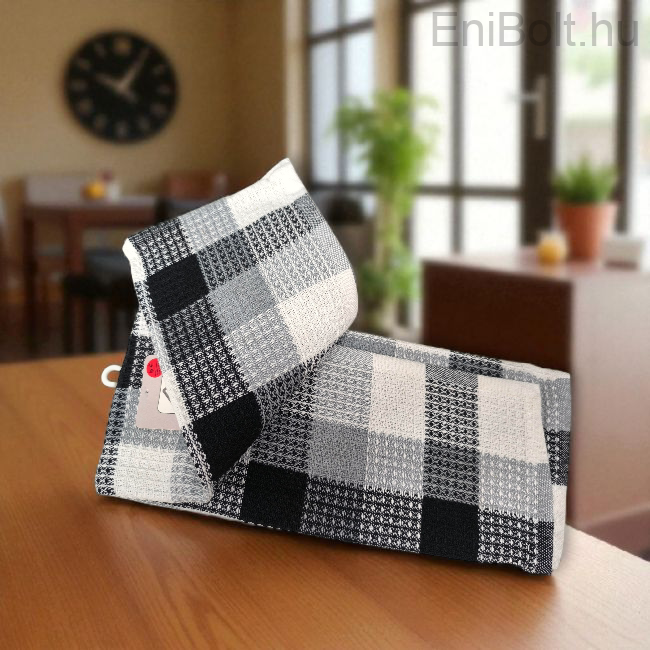 Kezdőlap » Otthon » Konyhai eszközök, kiegészítők » Eszközök » Konyharuha fehér szürke fekete kockás pamut 60x40 cm